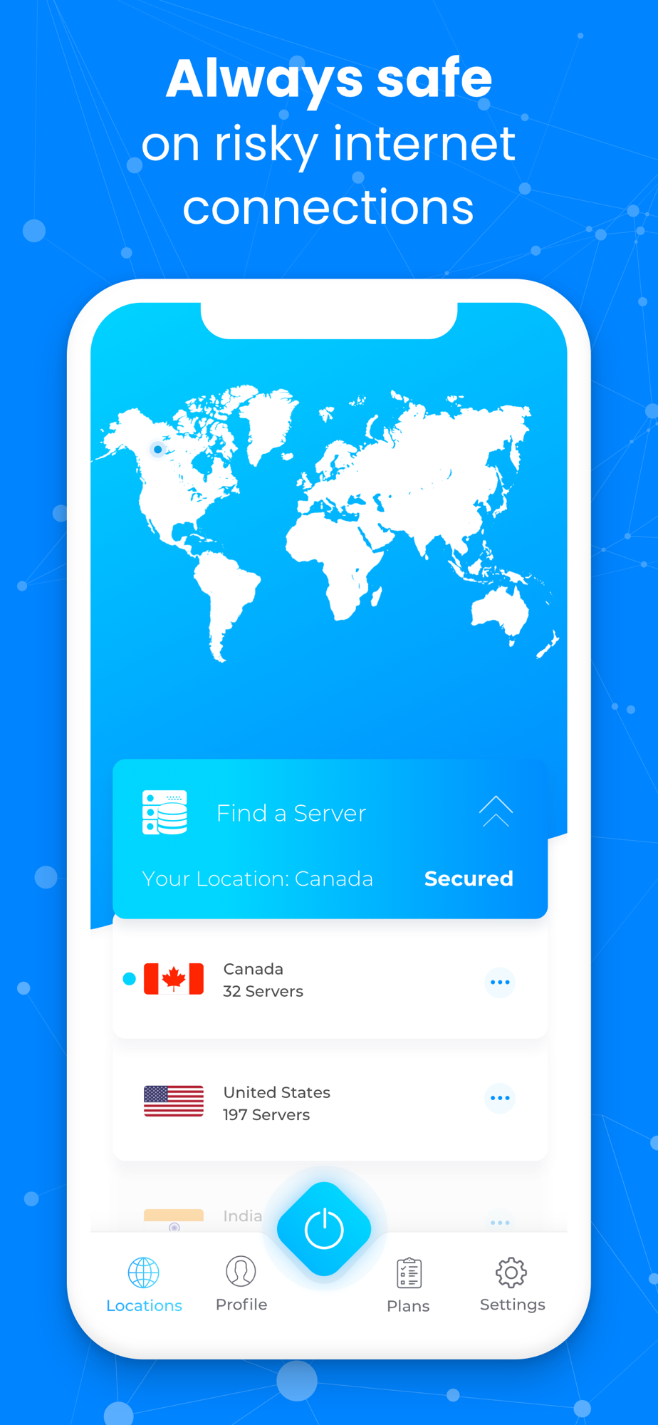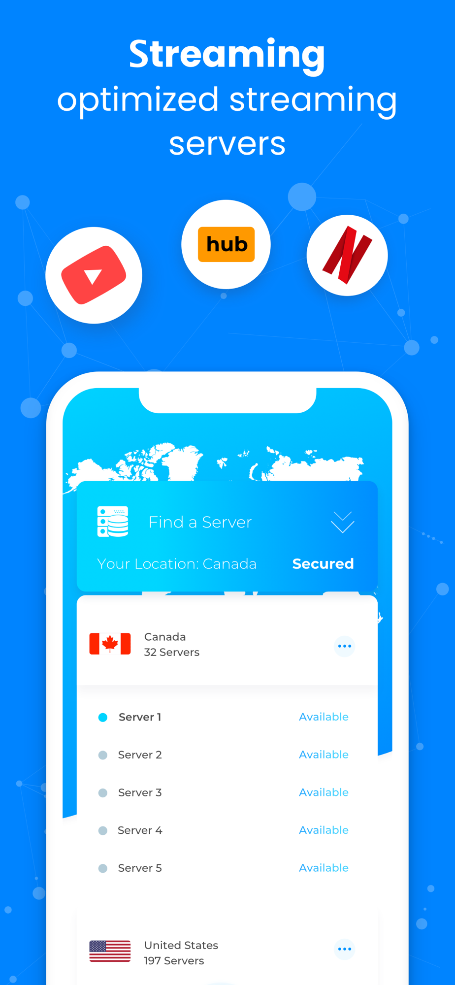 Push VPN Proxy Unlimited is fast! It detects your location automatically and connects you to the nearest server; as a result, your connection will be much faster than other providers.