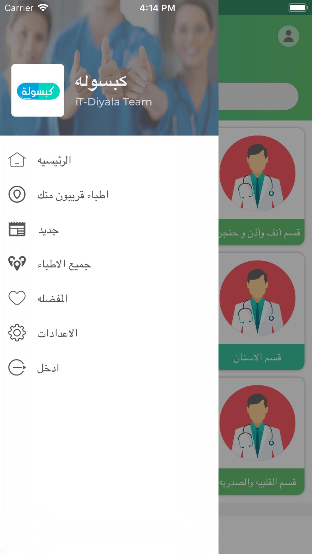 كبسوله التطبيق الطبي الاول في محافظه ديالى لمعرفه العيادات المتوفره الان مع تفاصيل العياده لحجز طبيبك