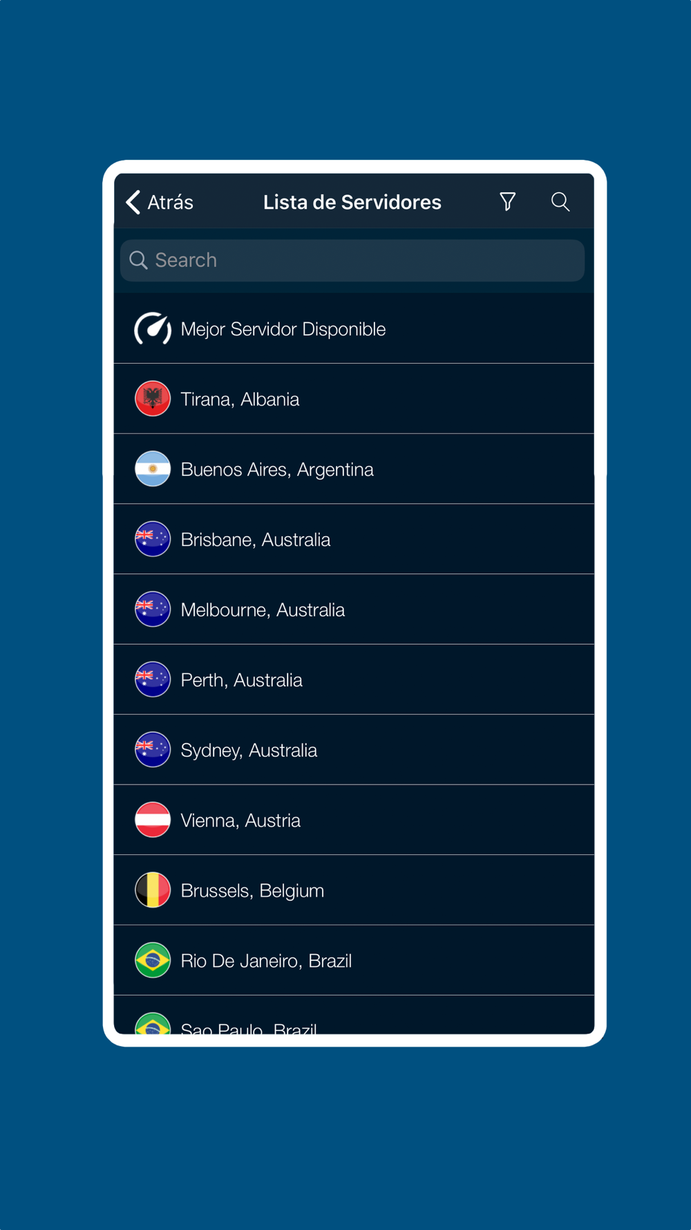 • Podrás conectarte a más de 1.400 servidores en más de 76 localidades del mundo y navegar como si estuvieses allí