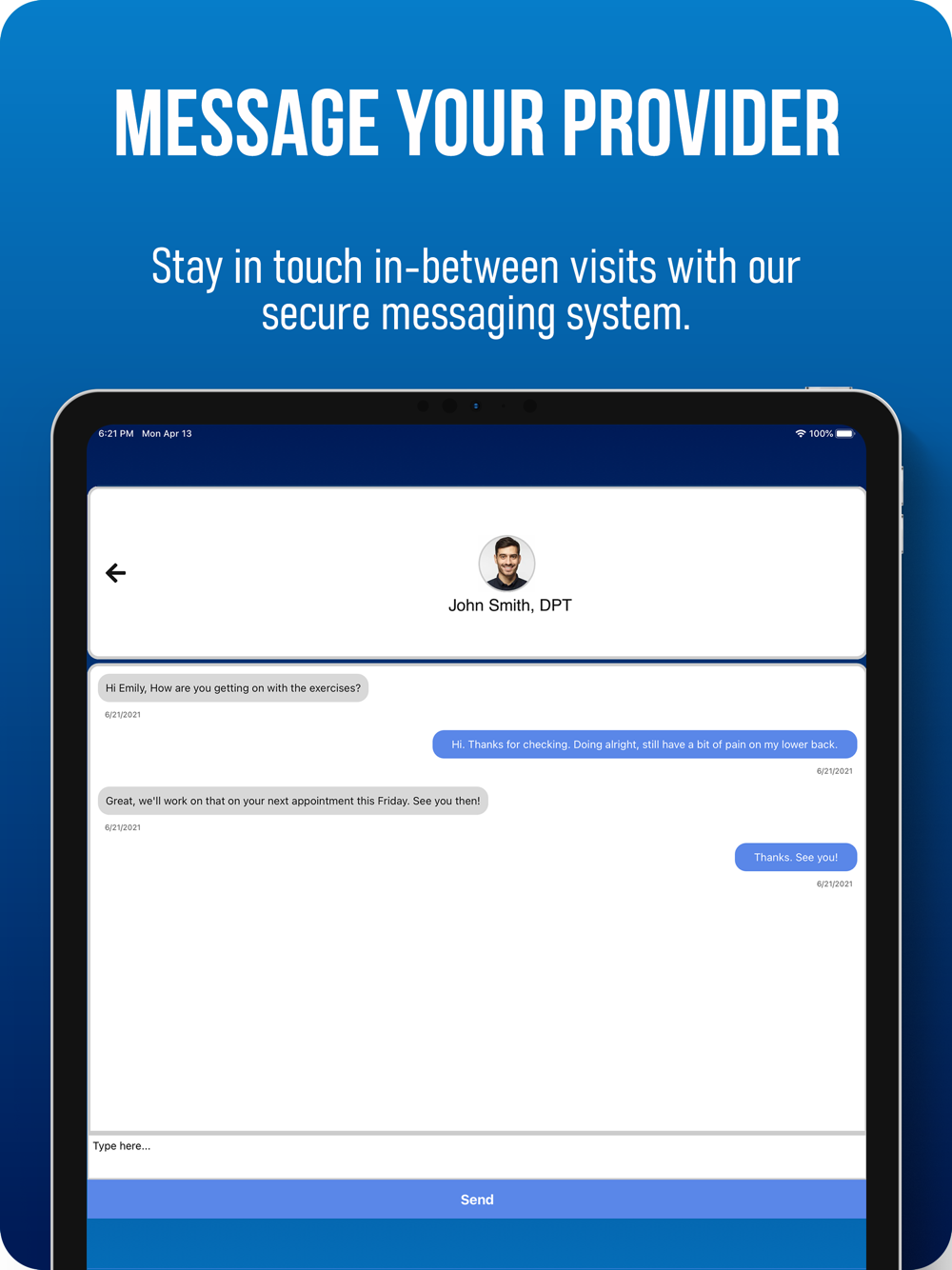 Welcome to the Recovery Physical Therapy App! Log on to access your personalized Home Exercise Program on your mobile device.