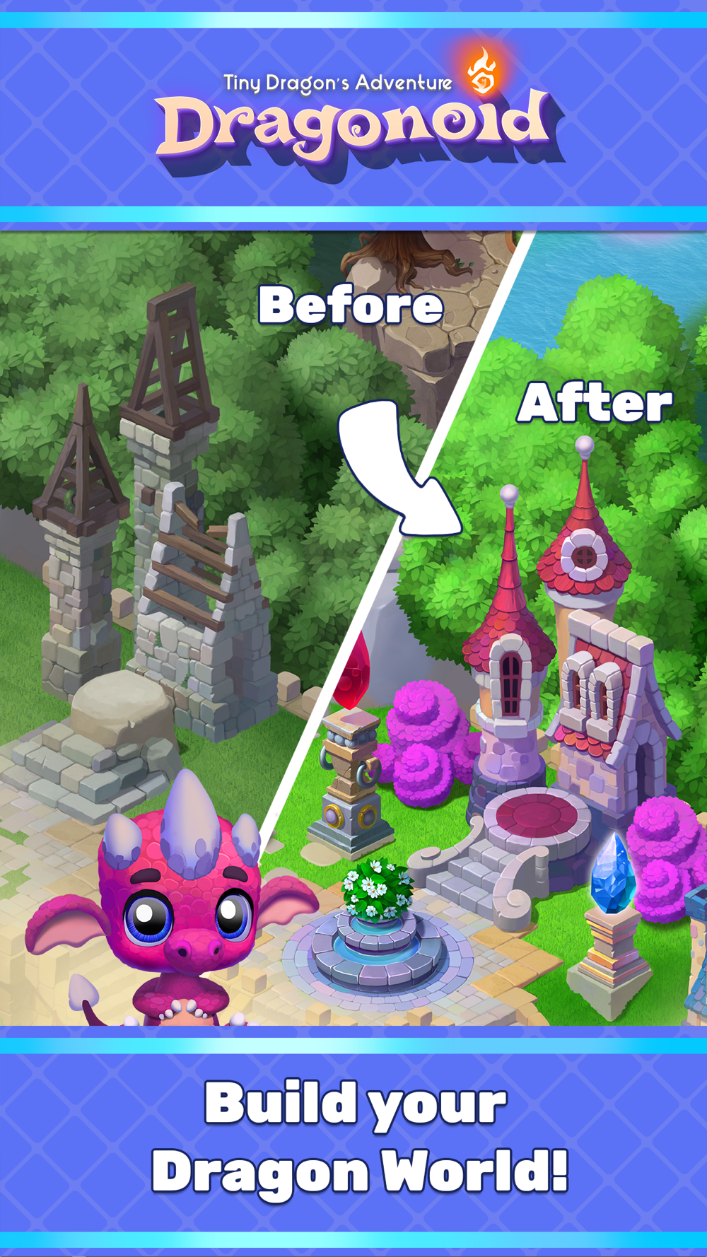 - Explore, design and enjoy three tiny dragon villages