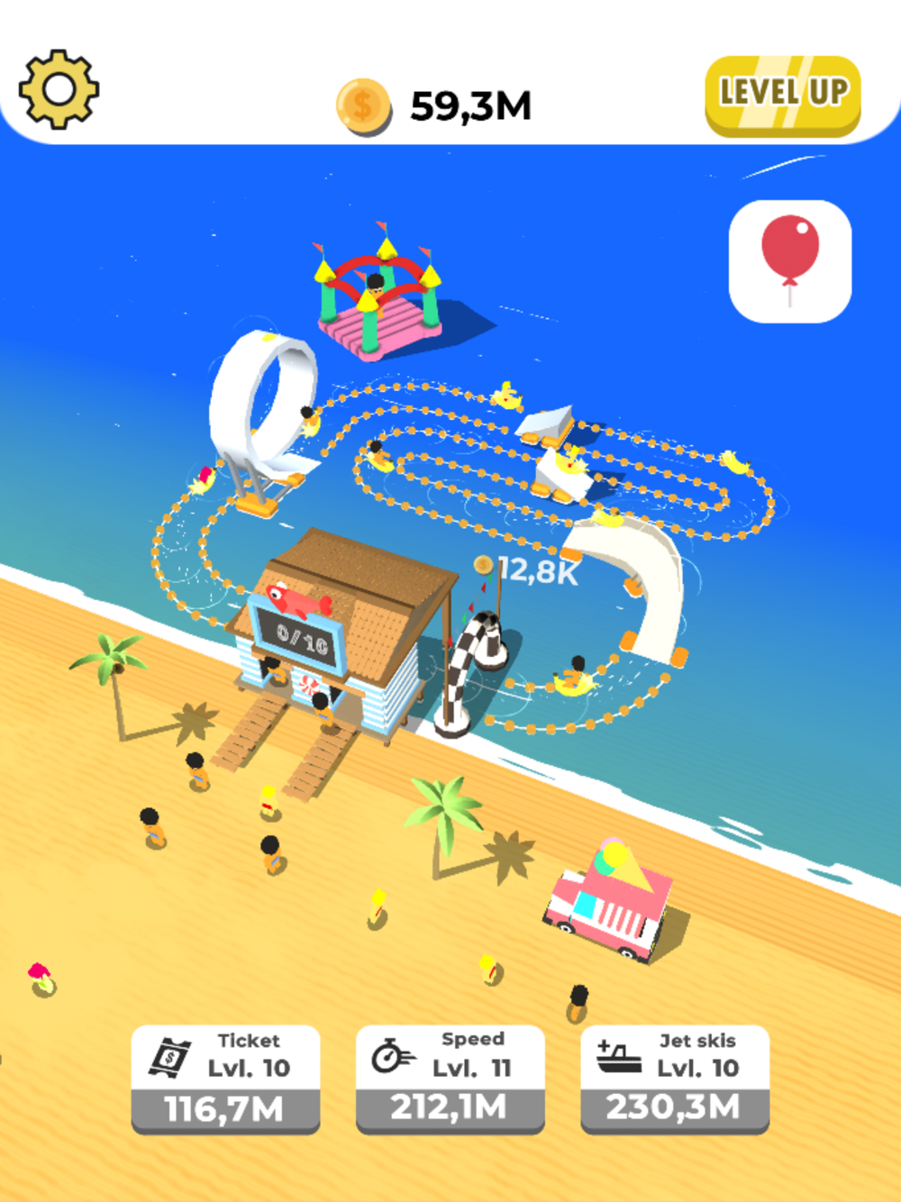 Get unbelievable jet skis and race circuit and upgrade your park to be the biggest one !