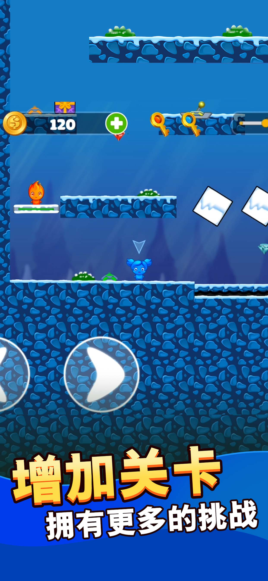 冰火人:公主与王子》是正版授权的森林冰火人手游,讲述了冰公主和火王子,携手一起进行冒险闯关的故事,游戏中,玩家需要分别指引冰公主和火王子进行不同的操作,相互之间进行配合,才能拿到打开大门的钥匙,冲出密室。本作延续了前作的经典玩法,同时又对美术进行升级重制,操作更流程,视觉体验更好,同时添加了大量的新关卡,更多的挑战可以带给用户更多的乐趣。如果你想收获更多的惊喜,就来挑战吧!