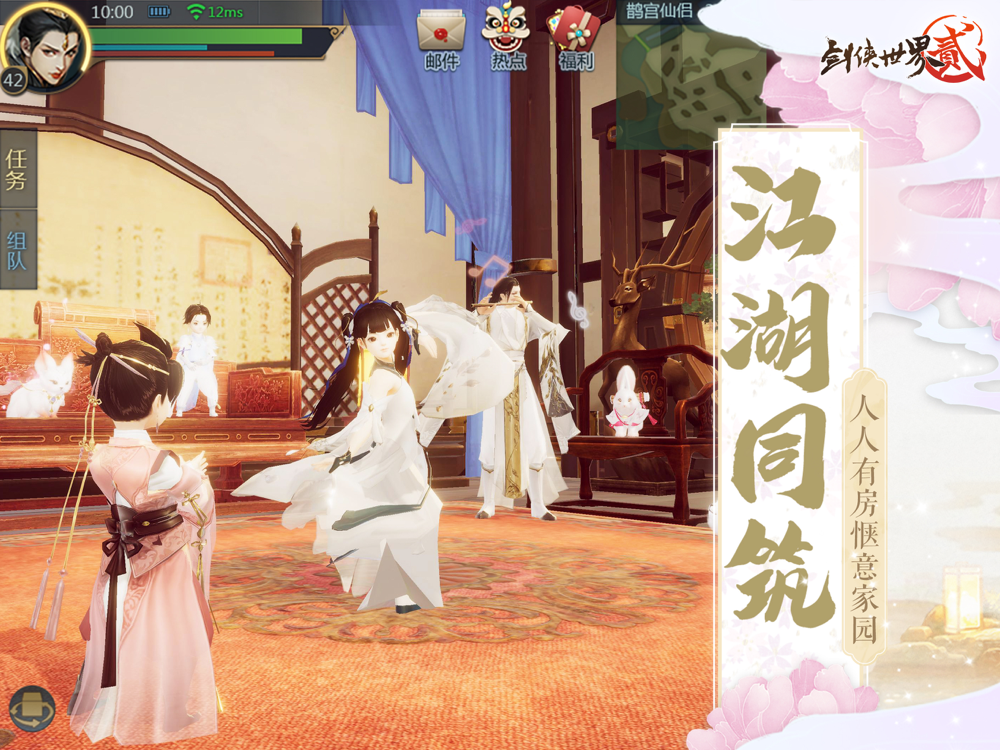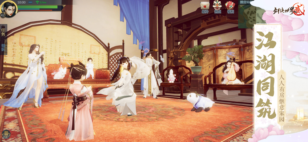人人有房,独立院落,专属管家,侠侣共筑。少侠获得地契即可在游戏内购置房屋,建造属于自己的一方天地,闲时邀请三两好友畅玩,别有一番趣味体验!