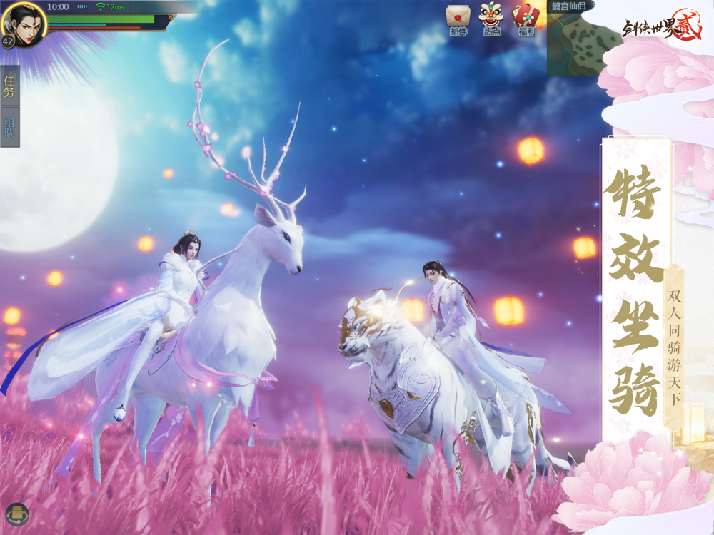 与好友同骑多人坐骑,观风赏月,畅游剑侠河山!4种体型任由选择,百款华丽外观推陈出新,还可染成你喜欢的颜色,让你独一无二。