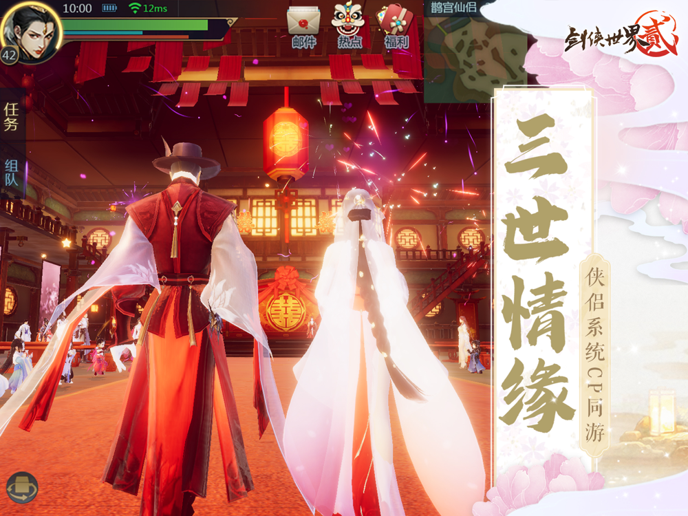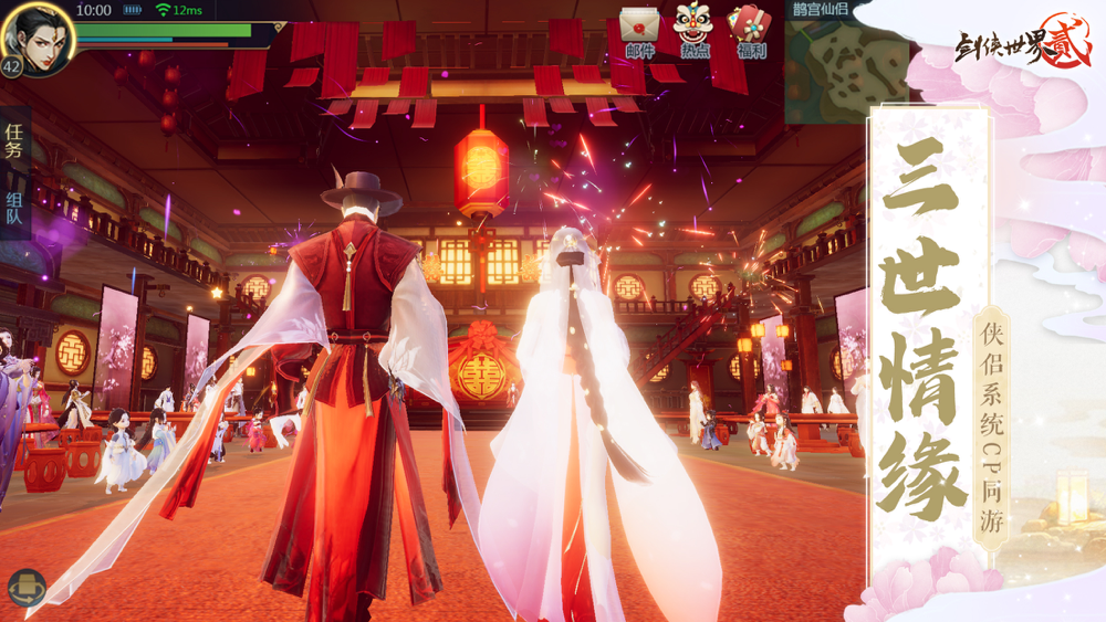 人间烟火与君同,三生缘定合一梦。少侠可与心仪的TA结为侠侣,从“信物定情”到“挑选吉日”,最后完成“侠侣仪式”,还有侠侣专属新外观免费获得,向全服昭示自己的满满幸福。