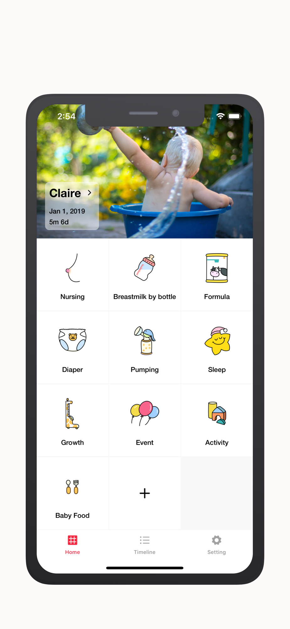 You can also add multiple family members to manage and understand your baby's diet, diaper changes, sleep, growth, and big events.