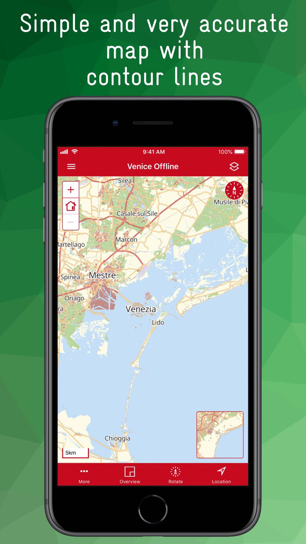 The rotatable map is an extract from OpenstreetMap with additional contour lines (resolution up to 20m). Even small paths and paths are clearly displayed. A variety of Points of Interest (POIs) such as bus stops, doctors, pharmacies, hospitals, police, post offices, banks, ATMs, hiking trails, drinking water points, toilets, petrol stations, ...