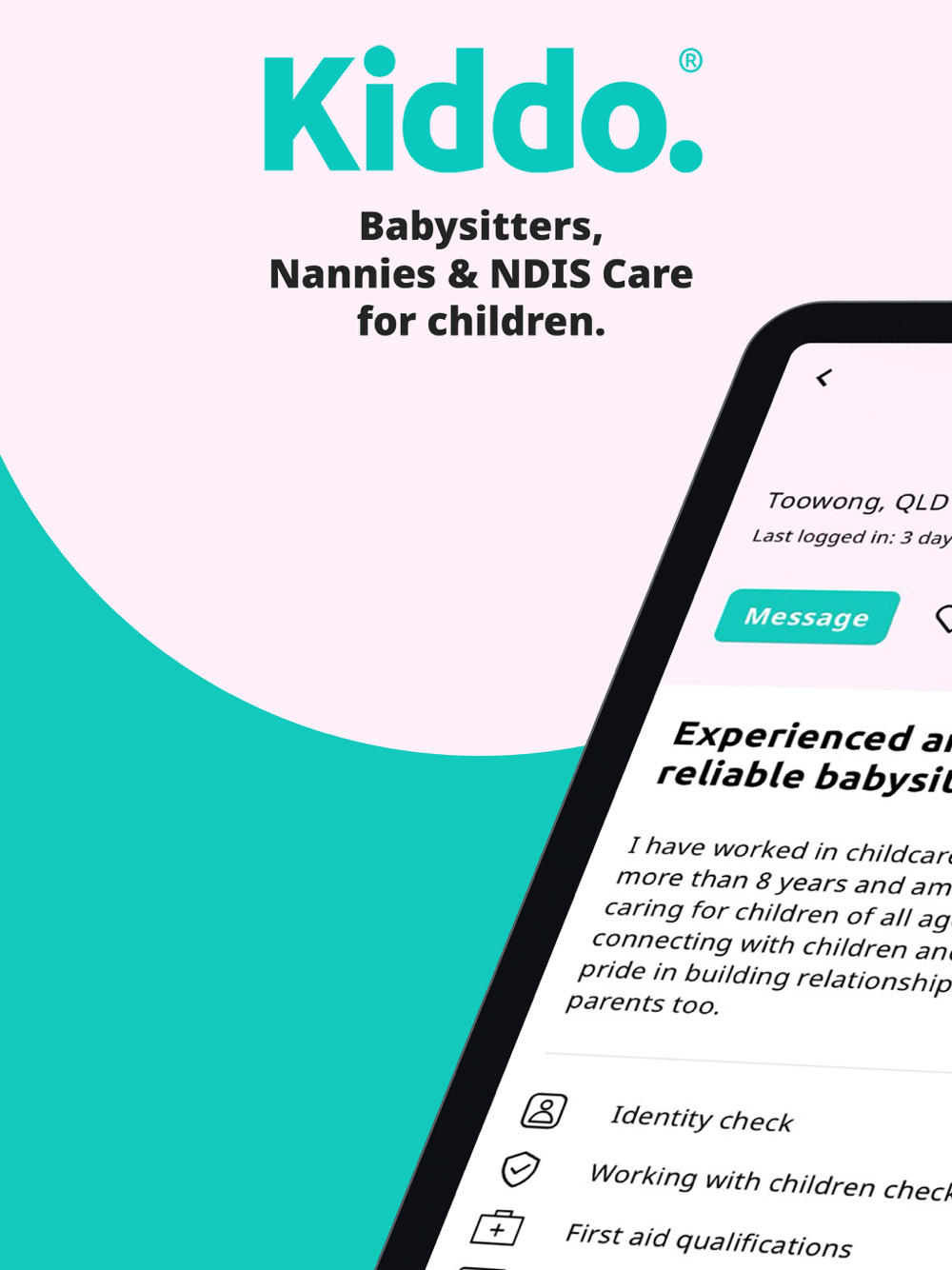 Kiddo connects parents to verified, local Babysitters, Nannies and NDIS Carers instantly.