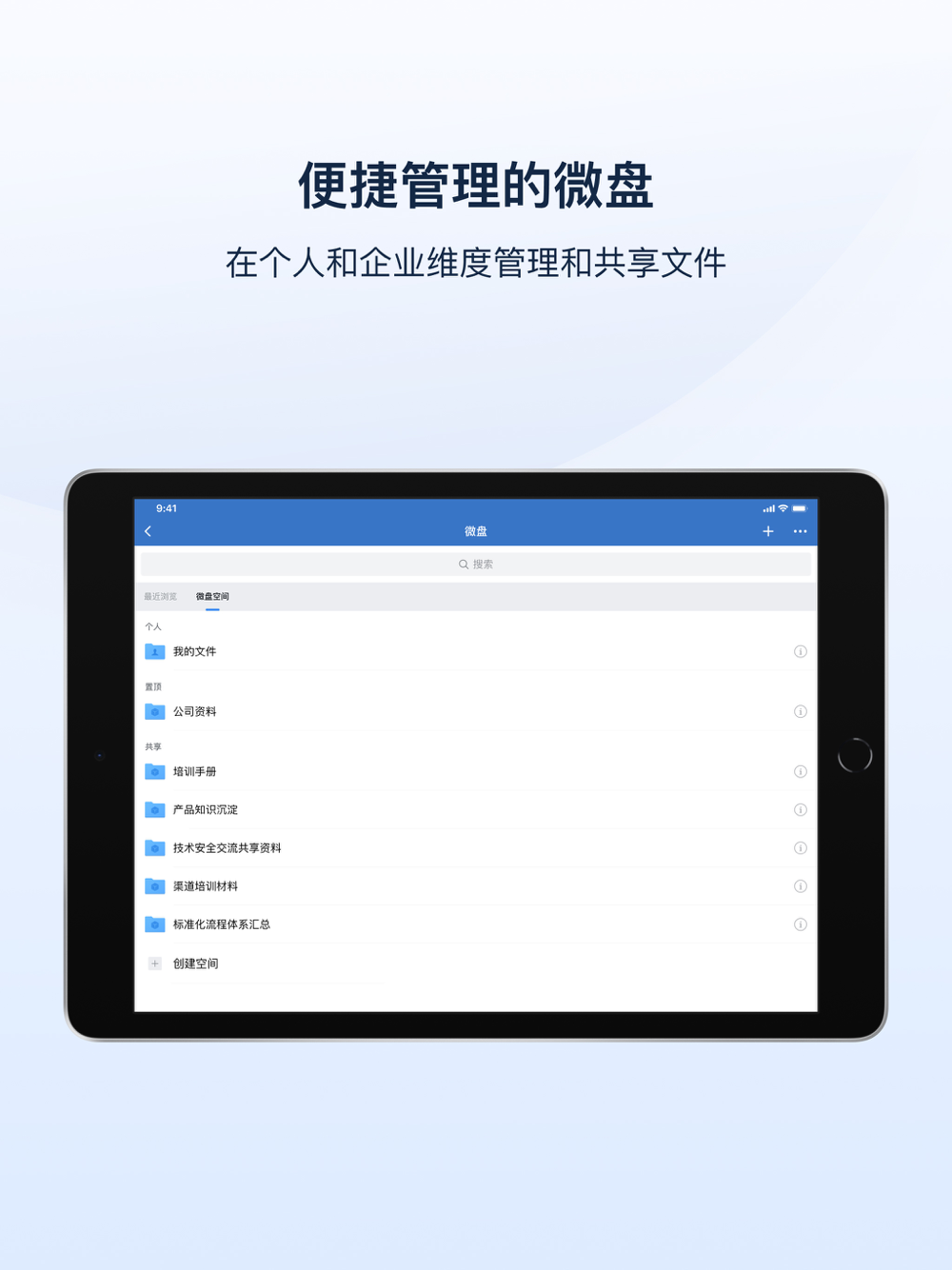 【微盘】提供了企业可管理的文件共享空间,可与同事实时共享工作资料,方便随时查看与多人共享。