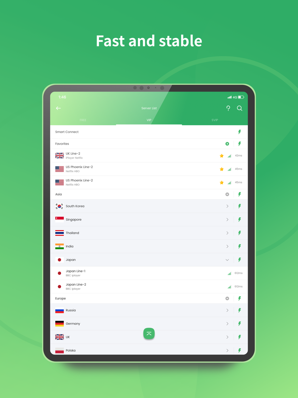 • Fast VPN Performance: our proprietary VPN protocol ensures fast VPN speed with stable and secure connections.