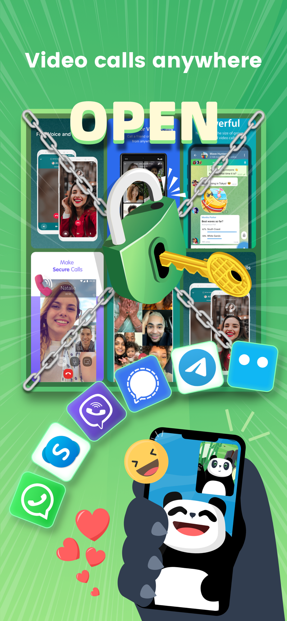 - Keep connected with your friends and families securely. Messages and calls are secured with Panda VPN's advanced encryption.