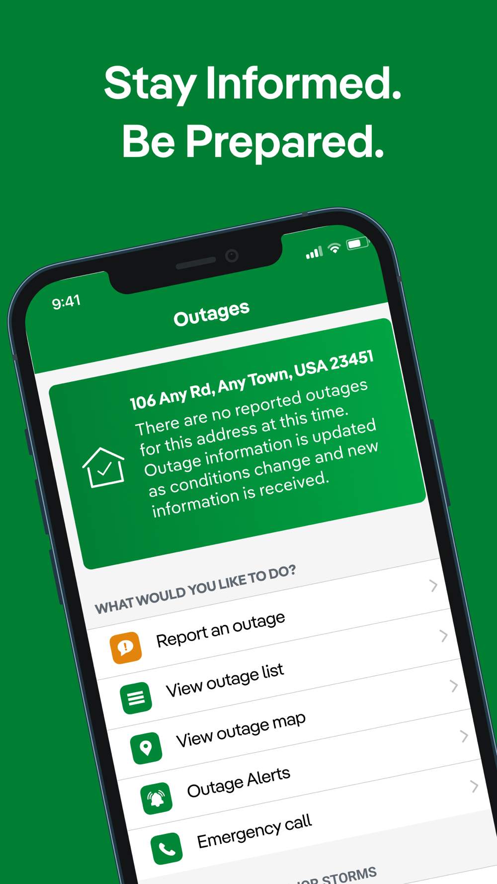 - Easily report an outage, see your estimated time of restoration and access outage lists and maps to stay informed.