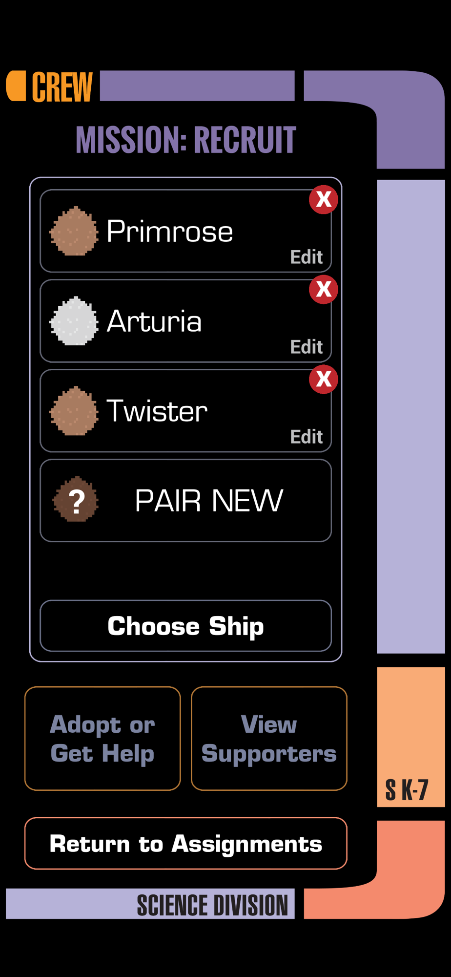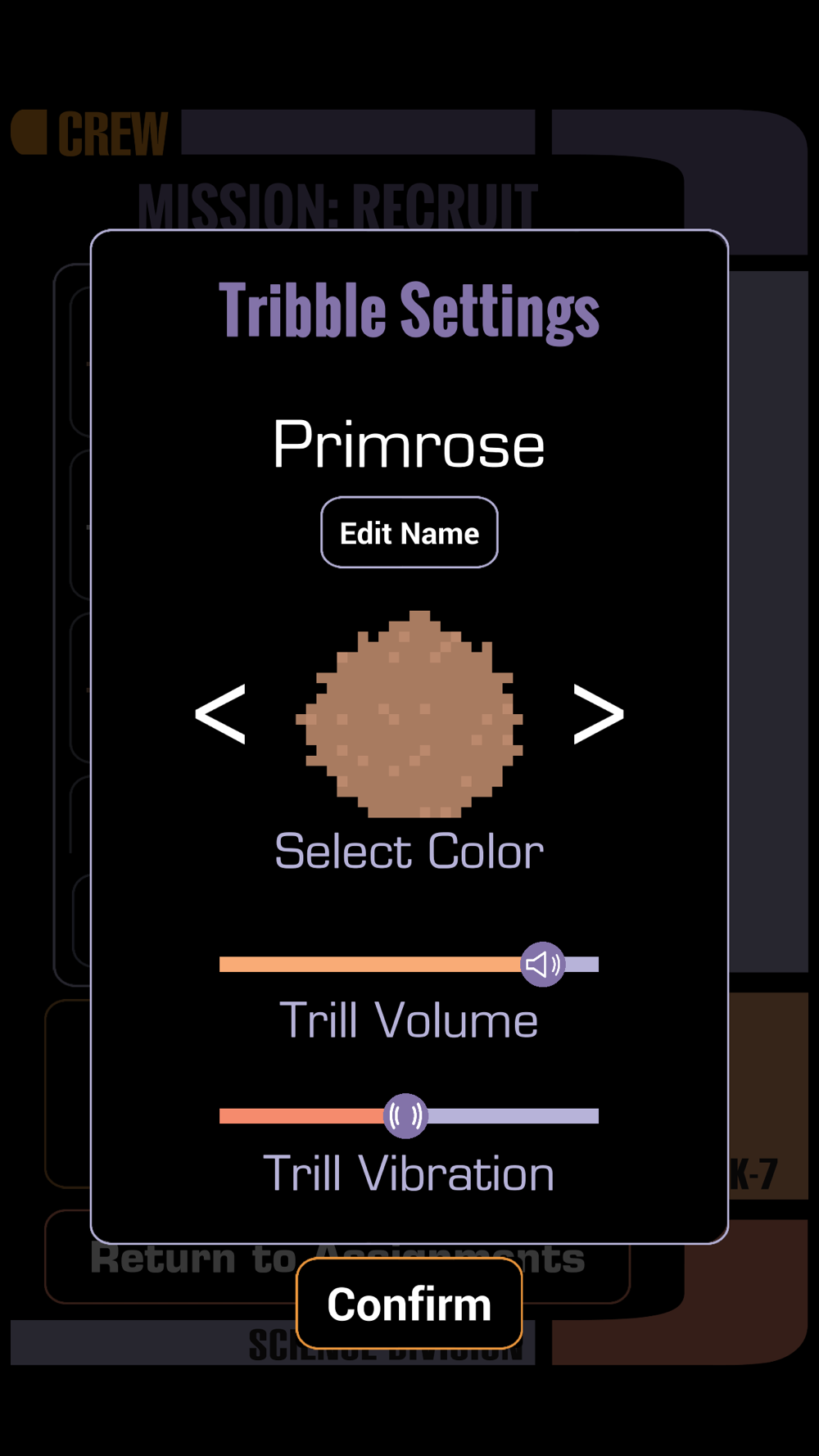 Pair with and name your Tribble, choose your ship, and assign your Tribble to different modes to carry out your mission: