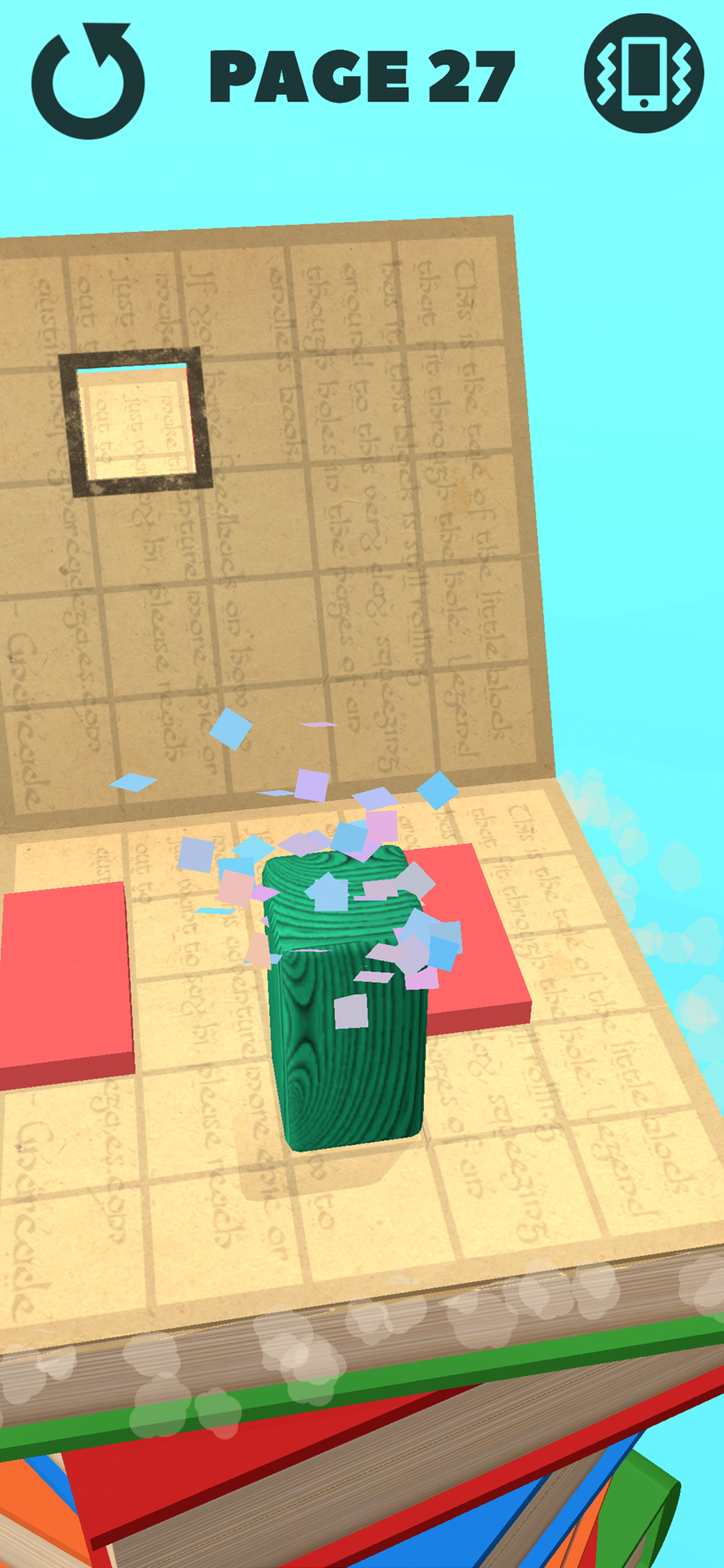 Swipe to rotate the block so it can fit through the holes in the pages.