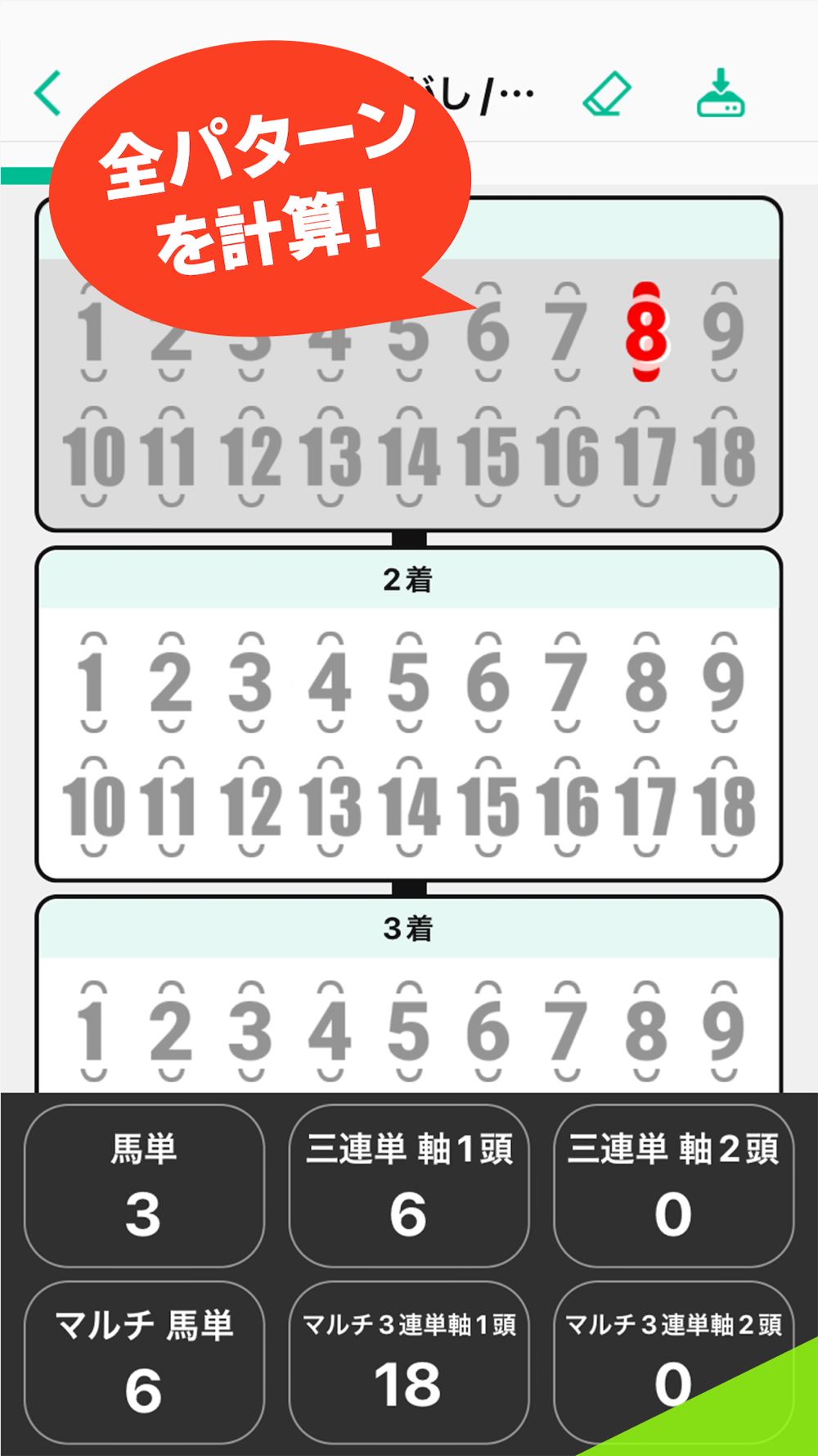 このアプリ1つでサクッと点数計算ができるので、競馬場にいてもその場でスマートに馬券の買い目を決められます!