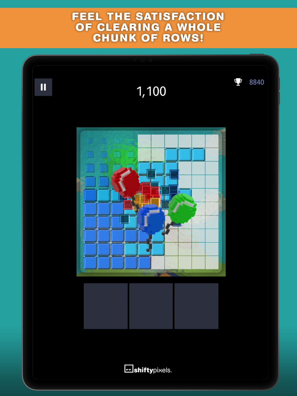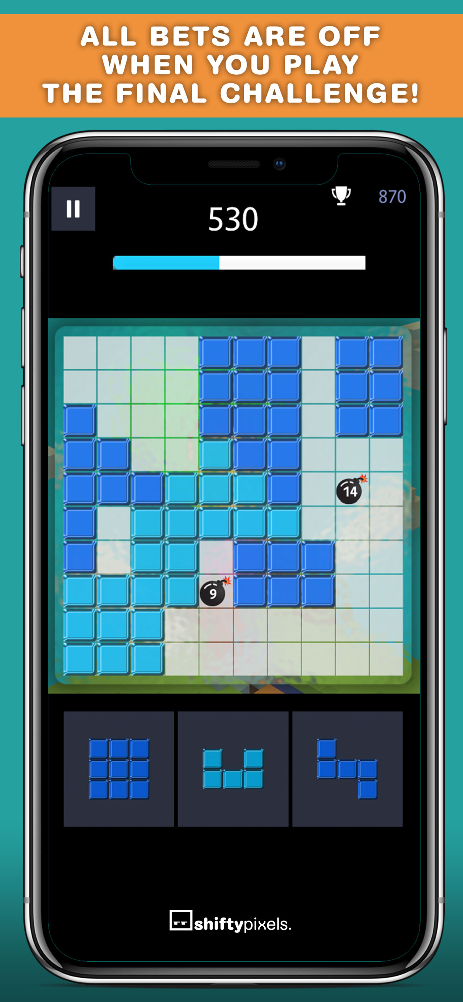 Get your zen on and play in Classic Blocks for a bout of uninterrupted, relaxing puzzle fun, or increase the challenge with a timer in Beat the Clock!