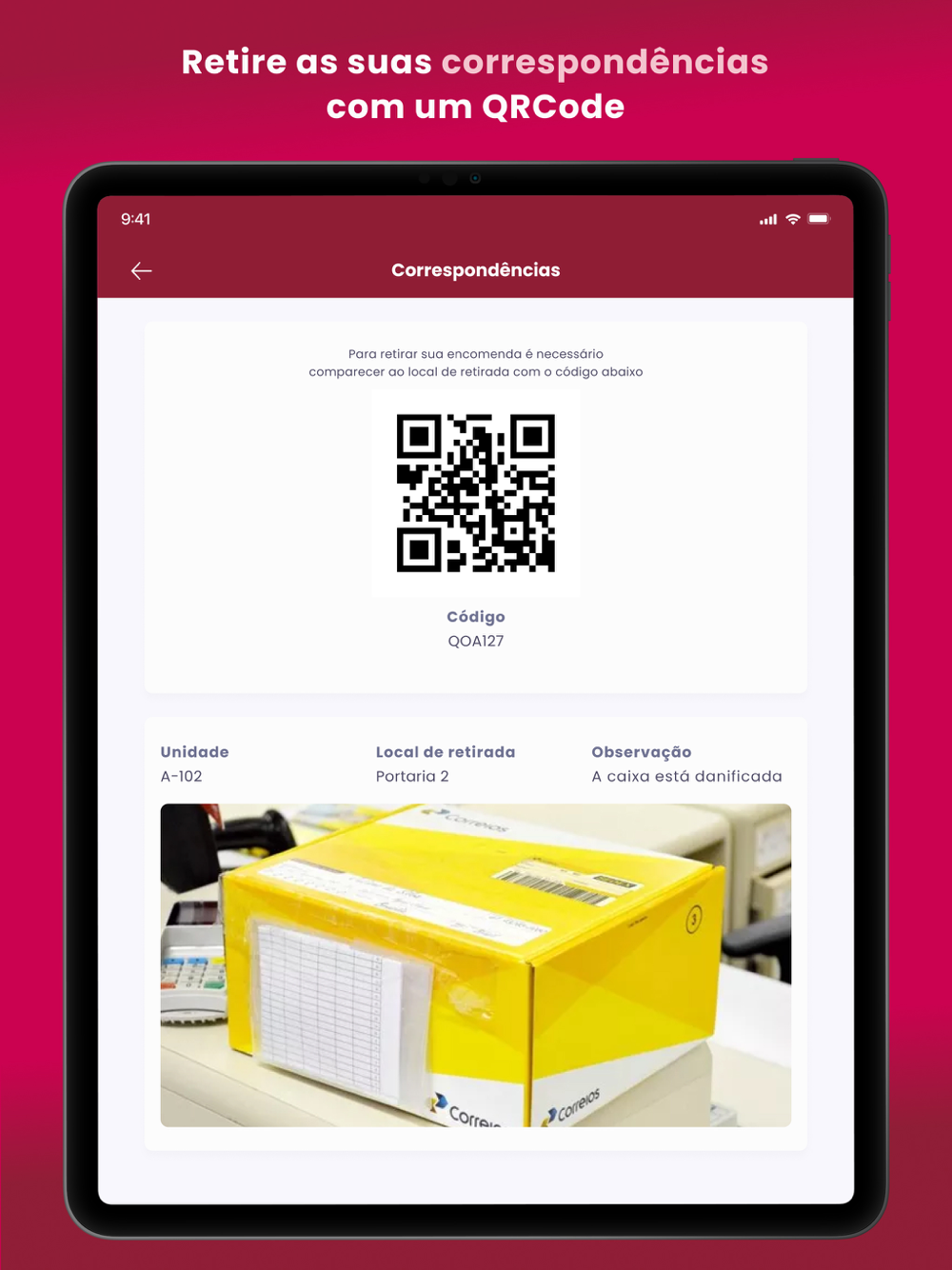 • CORRESPONDÊNCIAS: Ansioso pela entrega da encomenda que está para chegar? Porteiros tiram fotos dos pacotes e o morador recebe um QRCode para retirada do mesmo na portaria. Chega de caderninhos com letras que ninguém entende.