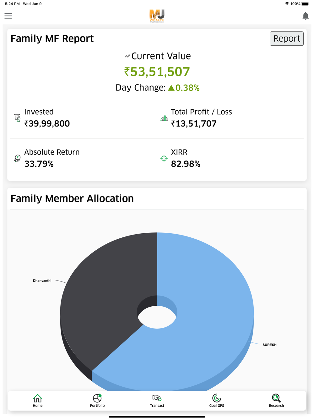 MJ Wealth is a financial application where investor can view his portfolio, calculator,goal tracker and more, Money attractive feature available here for investor more type report and graphical representation etc.