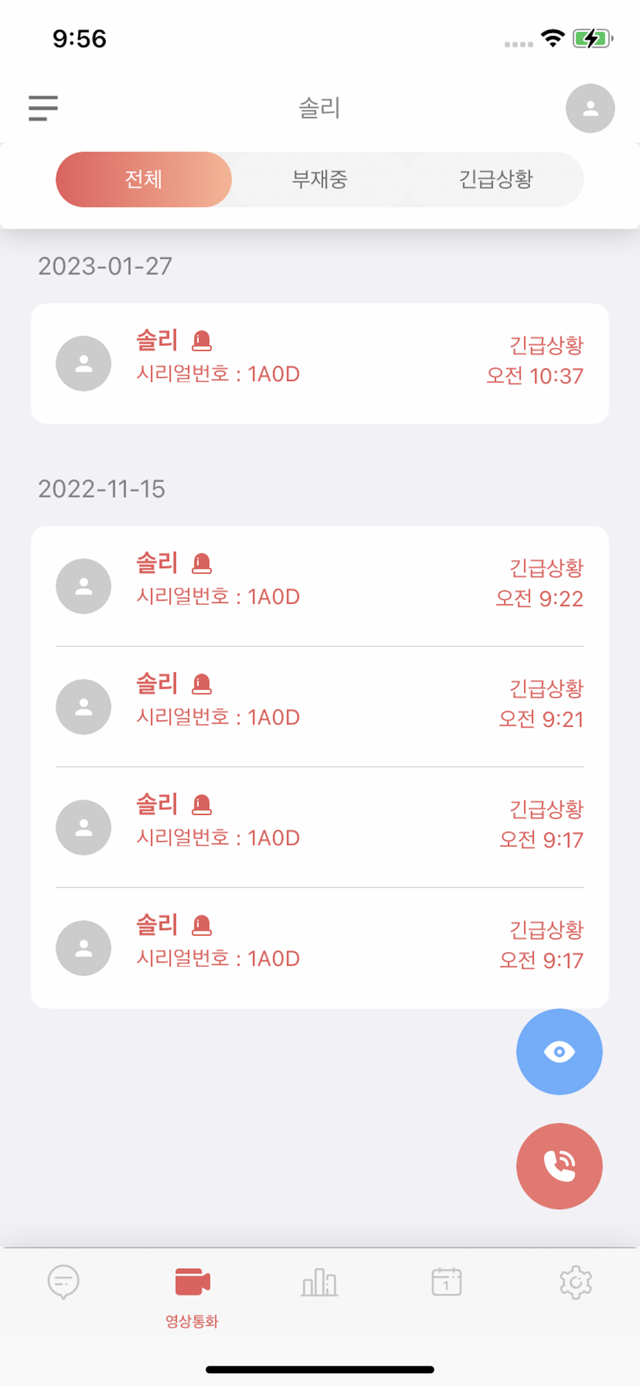 긴급상황 모니터링 - 케비가 위급상황을 알리면 모니터링을 통해 부모님을 확인할 수 있습니다.