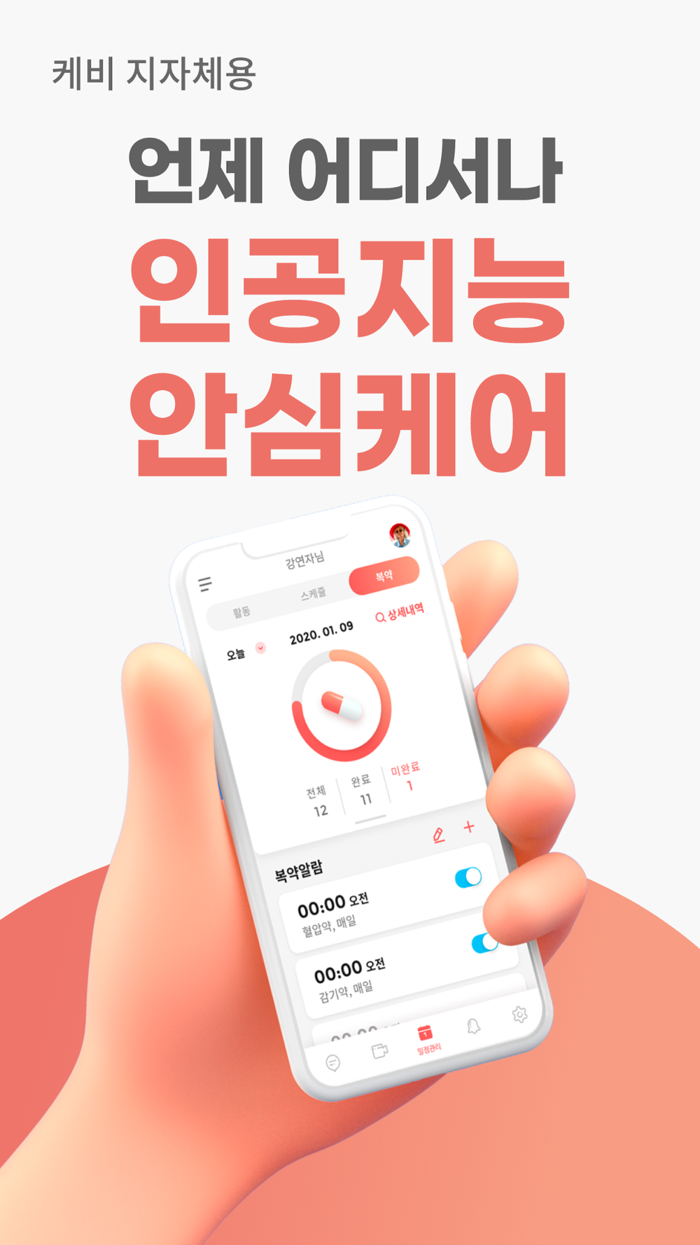 알람설정 - 자주 깜빡 하시는 부모님의 복약/일정 등을 설정하면 케비가 관리해 드립니다.