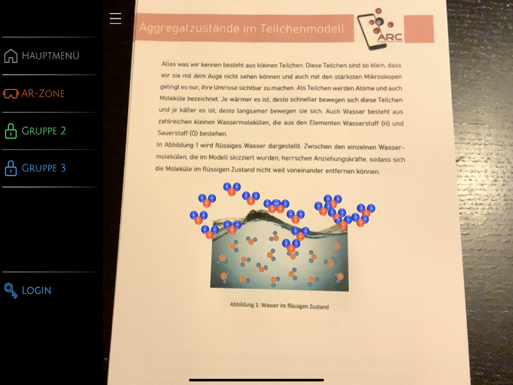 Die App kann derzeit hauptsächlich für die Studienteilnahme genutzt werden. Dennoch können Sie sich in der App unter "Hinweise" Beispiellernmaterial zum Thema Aggregatzustände herunterladen. Die dort zu findenden Abbildungen können Sie mit der AR-Kamera scannen, wenn Sie im Menü den Punkt "AR-Zone" auswählen.