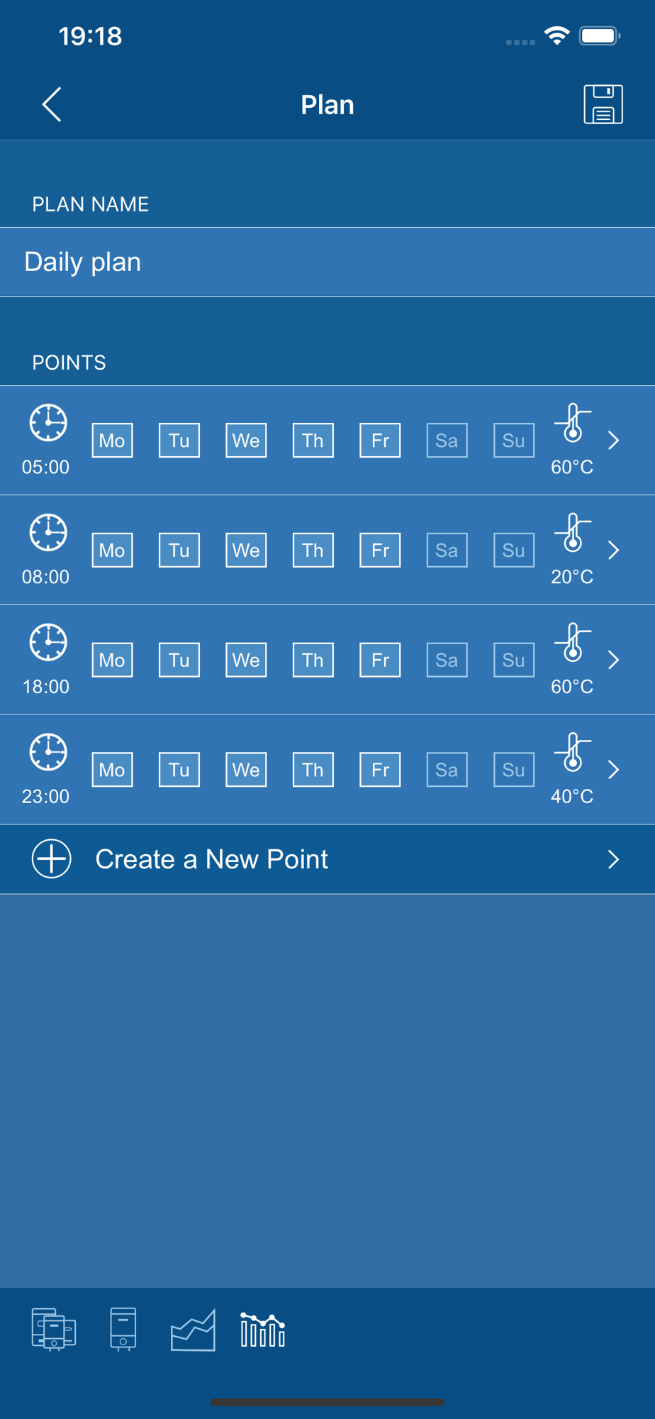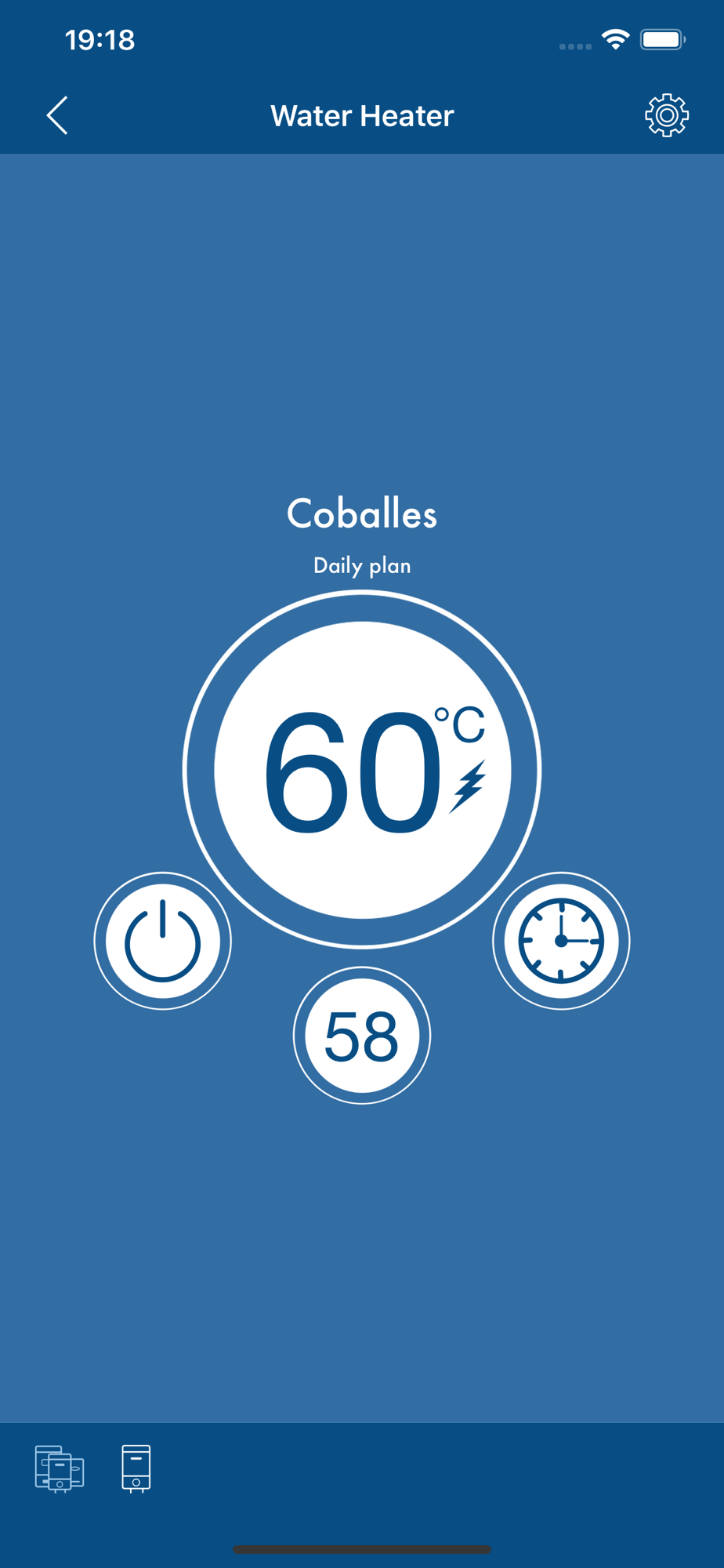 Integrated Wi-Fi module enables wireless connection to the water heater. The remote control is provided via this app.