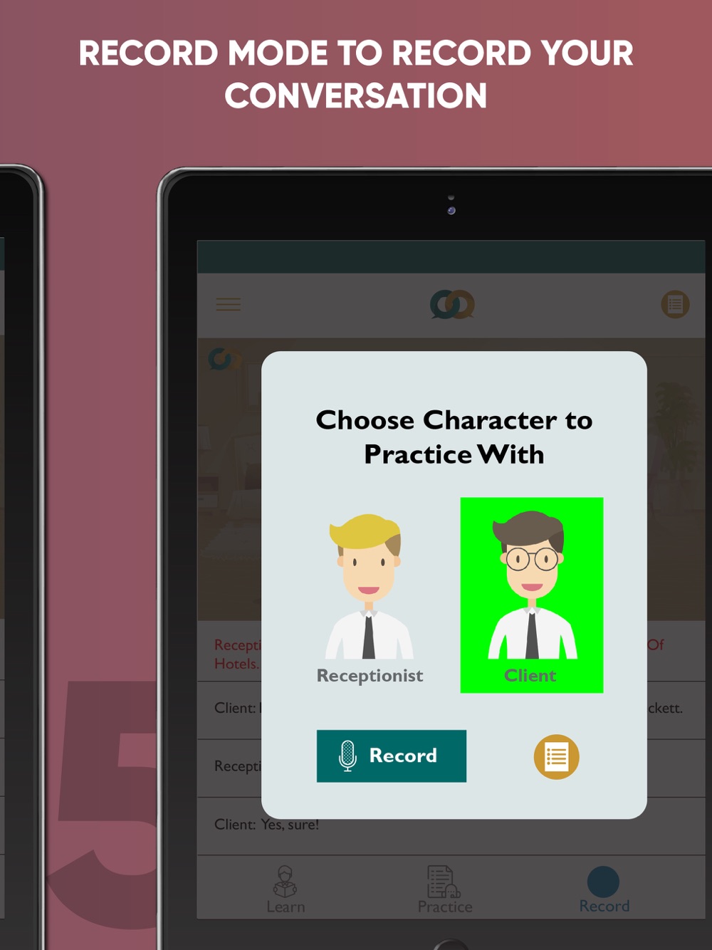 In a hotel or a college, practicing English through the app would reduce the possibility of getting embarrassed.