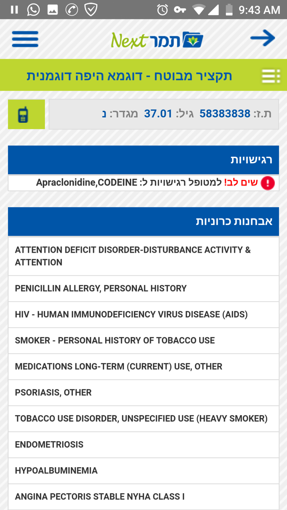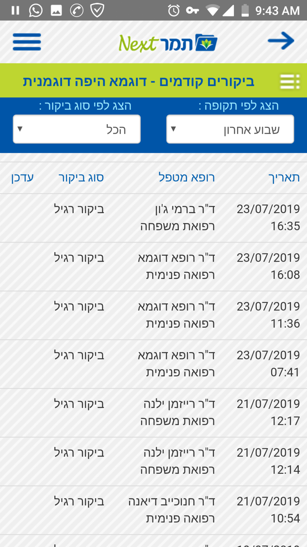 ניתן לאתר מטופל ולצפות בתקציר תיק וביקורים קודמים.