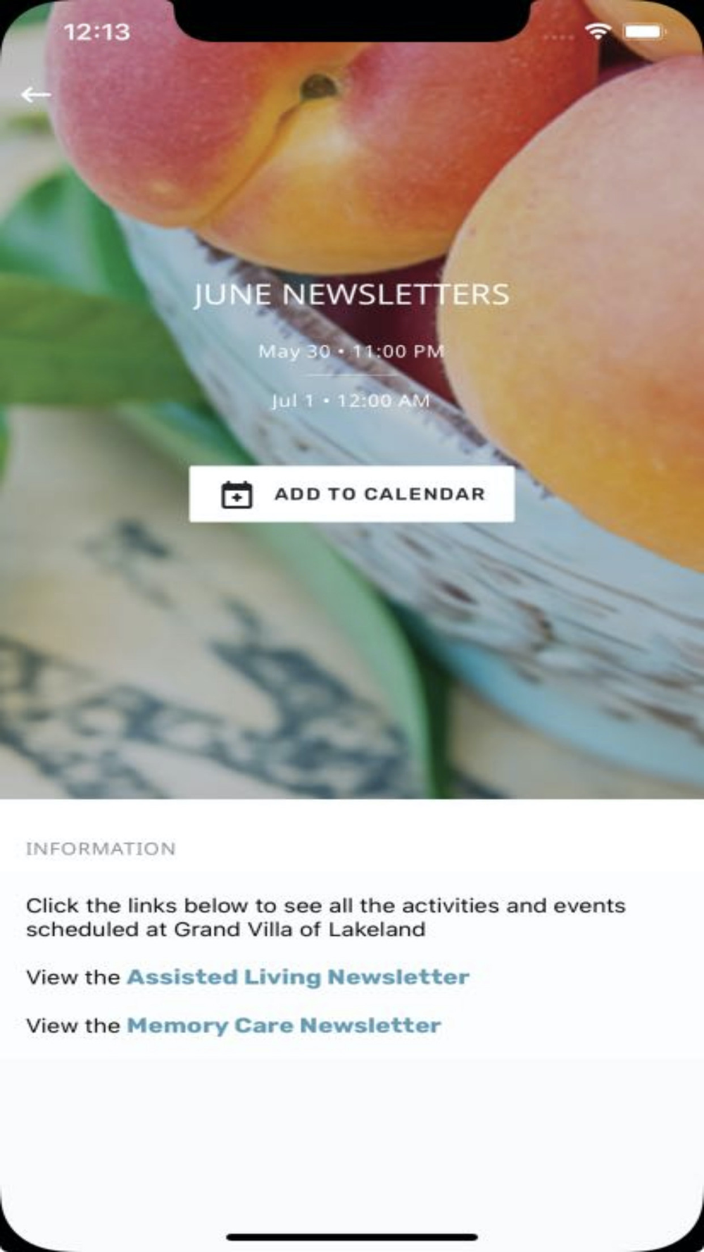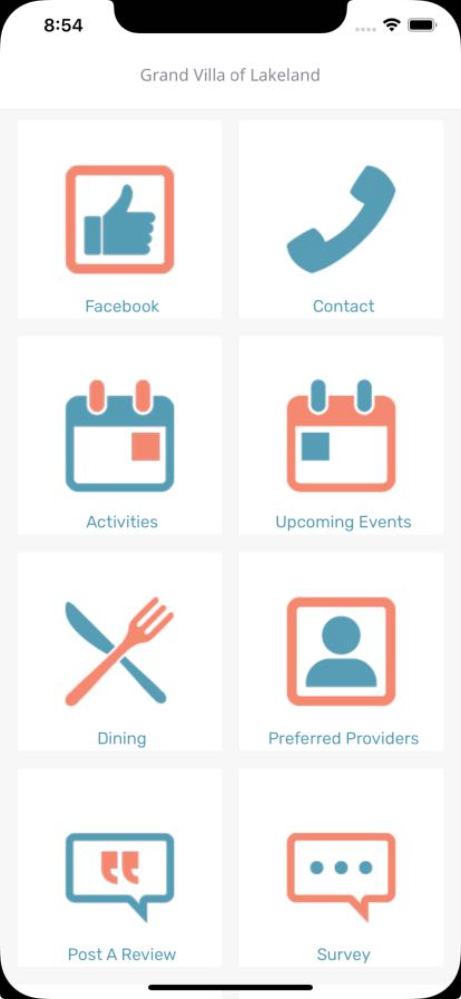 Our interactive phone app allows families to stay in constant contact with Grand Villa of Lakeland and always know what's going on in the community. App includes: Pictures, Photos, Events, Newsletter, Menu, Contacts, Feedback, and more!