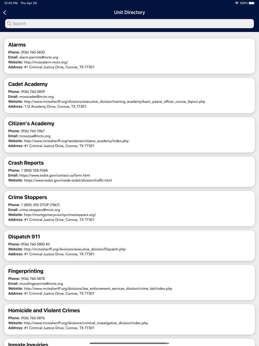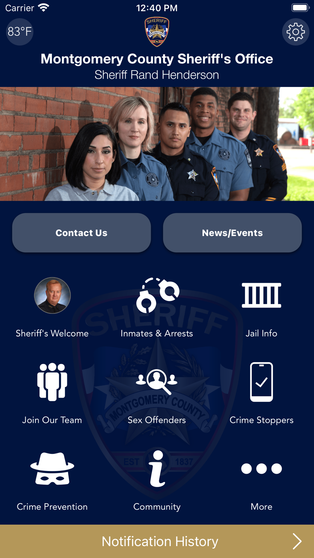 The Montgomery County Sheriff’s Office mobile application is an interactive app developed to help improve communication with area residents. The Montgomery County Sheriff App allows residents to connect with the Montgomery County Sheriff’s Office by reporting crimes, submitting tips, and other interactive features, as well as providing the community the latest public safety news and information.