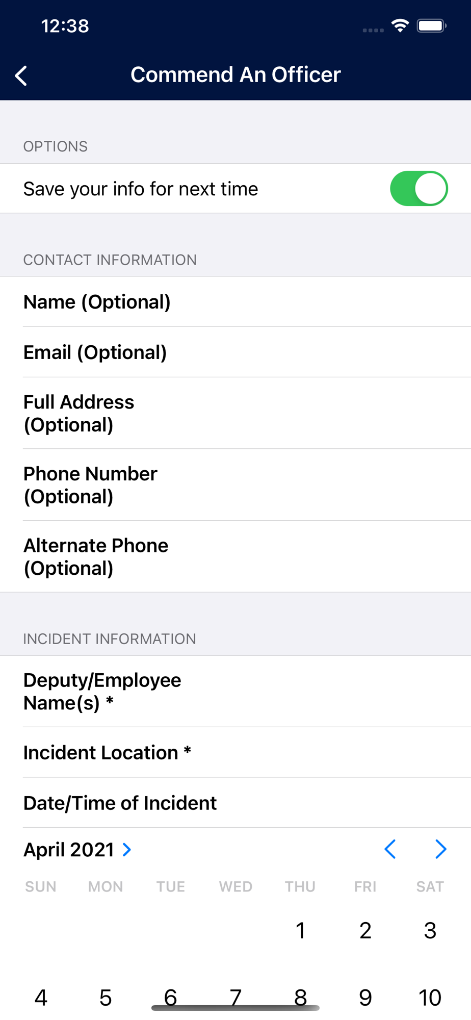This app is not intended to be used to report emergency situations. Please call 911 in an emergency.