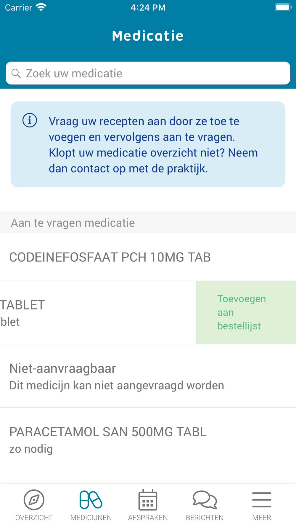 Hiermee heeft u 24 uur per dag toegang tot uw medicatieoverzicht, kunt u eerder voorgeschreven medicijnen bestellen, afspraken maken en een eConsult starten bij uw huisarts! Een overzicht van aangesloten praktijken vindt u in de app. Wij zijn benieuwd naar uw ervaringen om zo de app verder te kunnen optimaliseren. Laat het ons weten via de feedback knop in de app of via een mail naar