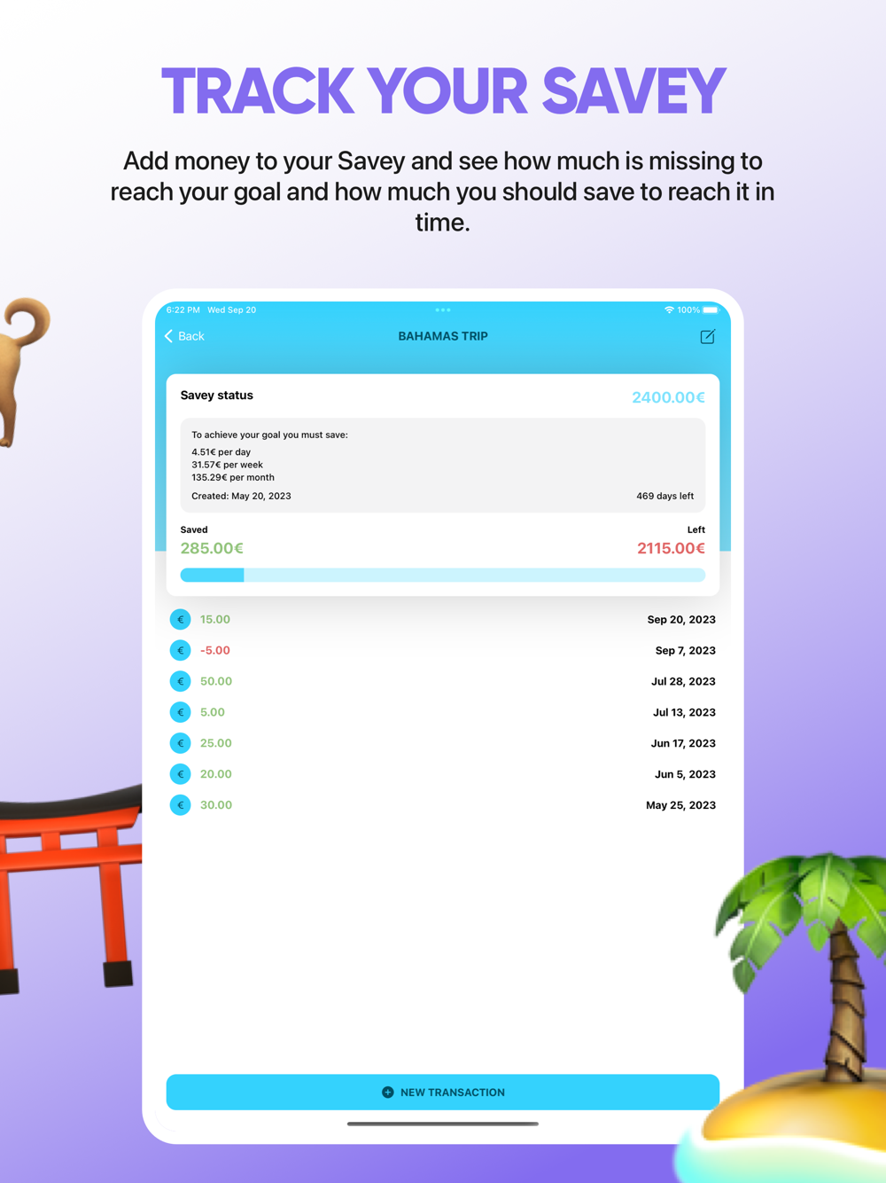 Imagine sipping cocktails on the beautiful beaches of the Bahamas, all thanks to your smart savings strategy. Say hello to Savey, your ultimate savings companion.