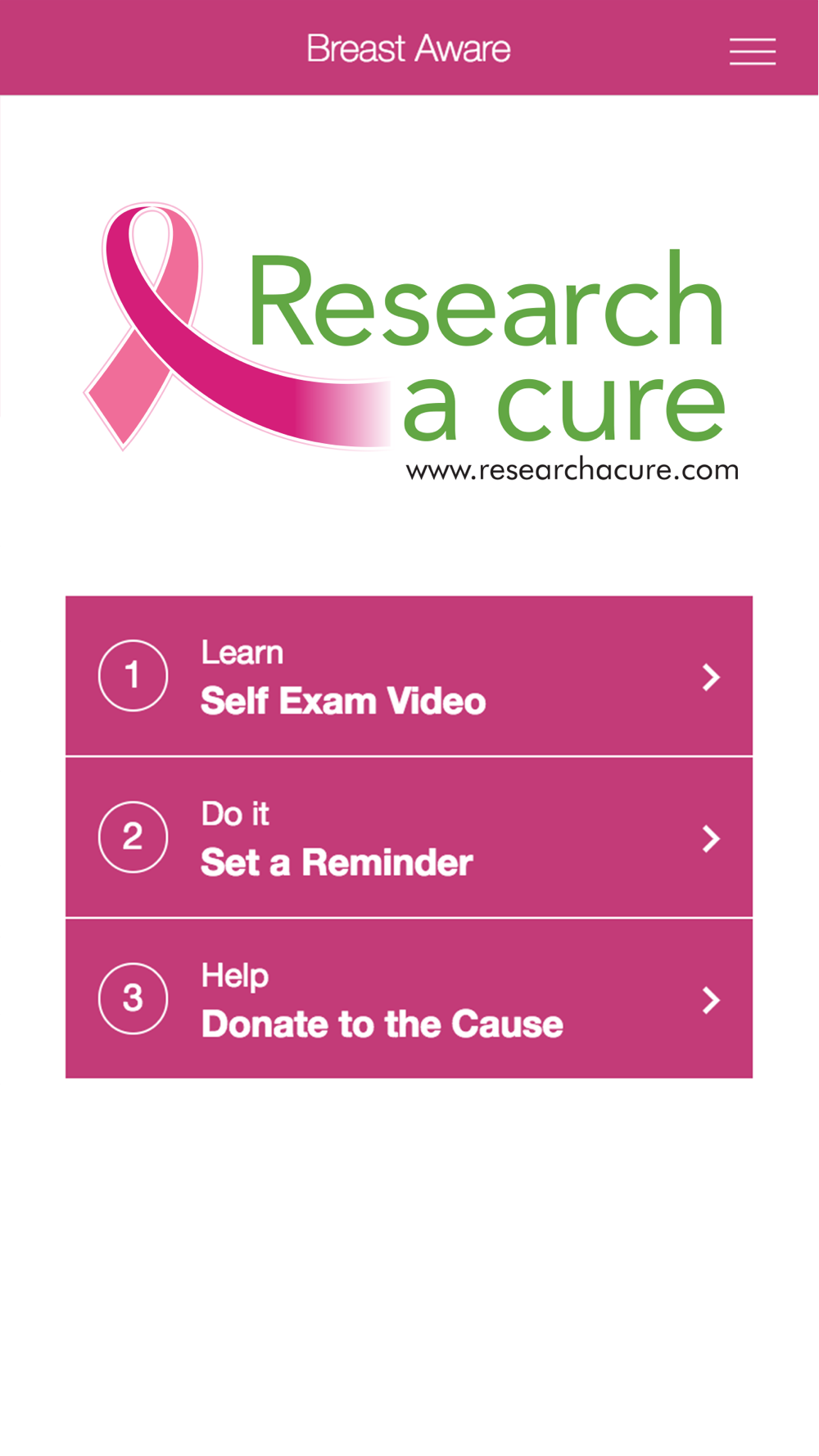 Research a Cure App is a medical / educational app promoted by Research A Cure NFP and helps women, through a reminder, to perform a breast check monthly or quarterly.