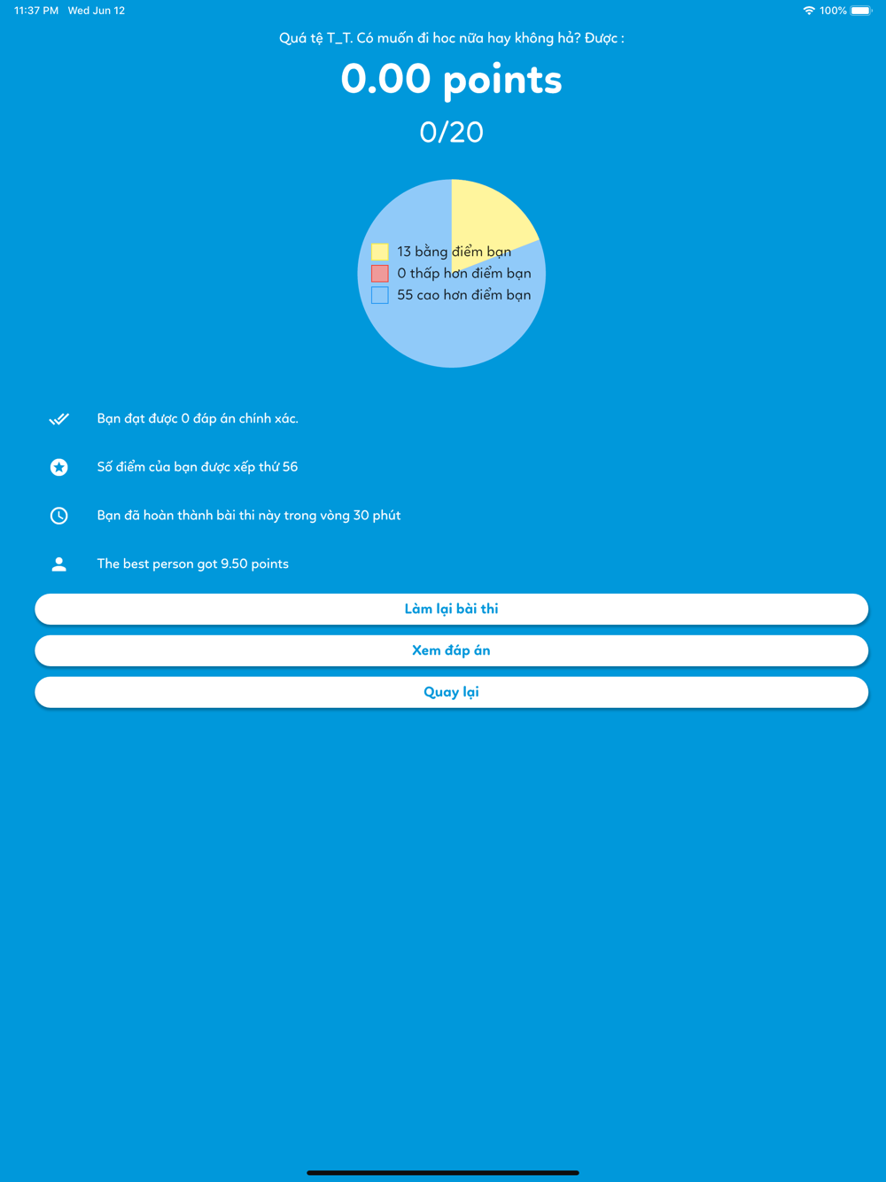 - Xếp hạng kết quả thi, so sánh kết quả thi với tất cả người dùng, tạo môi trường thi đua lành mạnh.