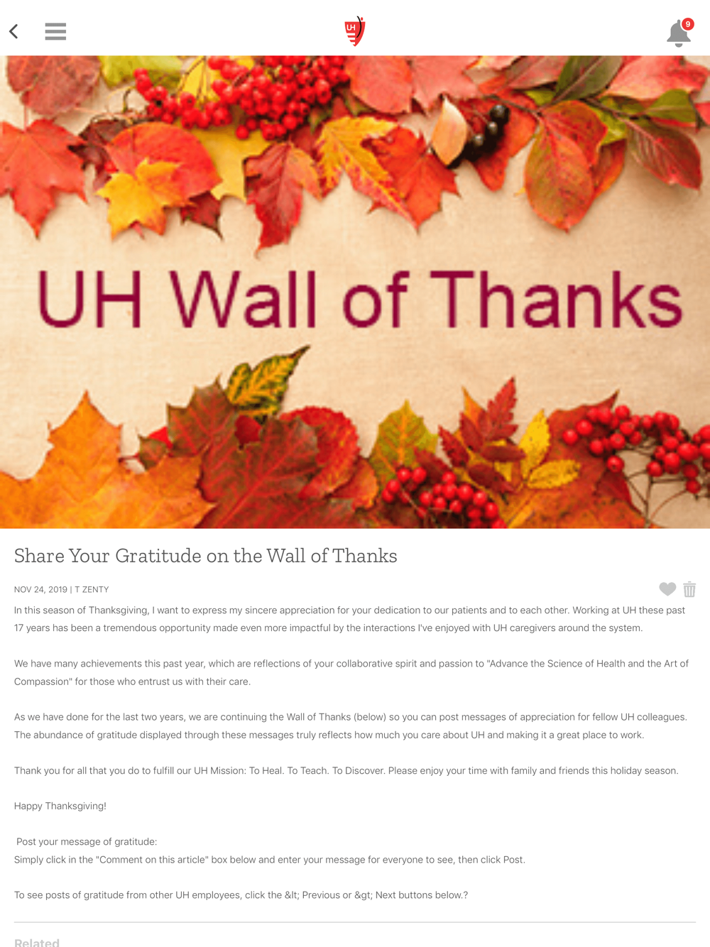 Stay connected with University Hospitals with the My UH app. This interactive tool gives you immediate access to the employee information you need. With My UH, you can review employee information, news articles, benefit updates, system information and urgent notifications. You can also create your own content and invite your own followers! Download My UH Today!