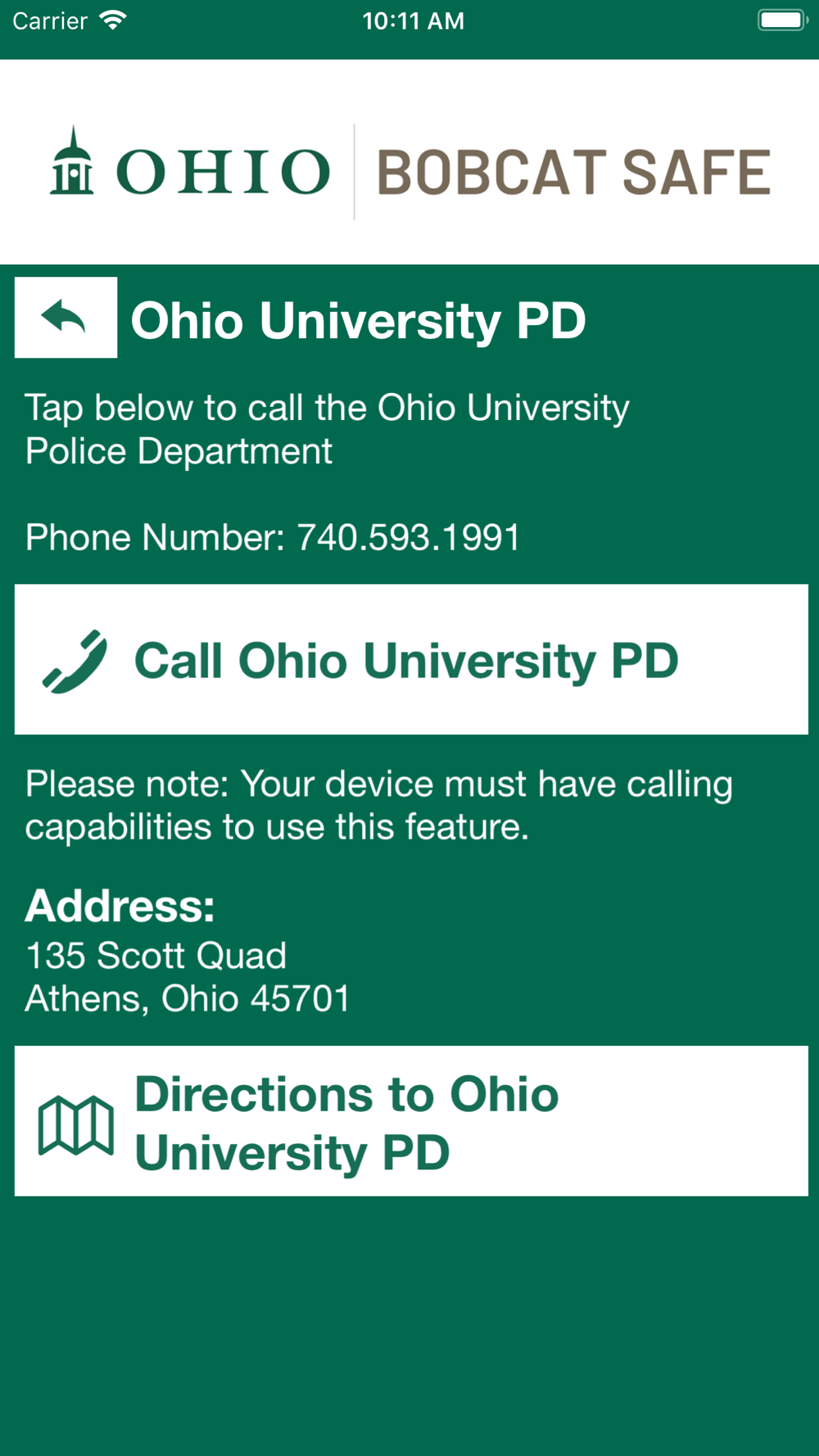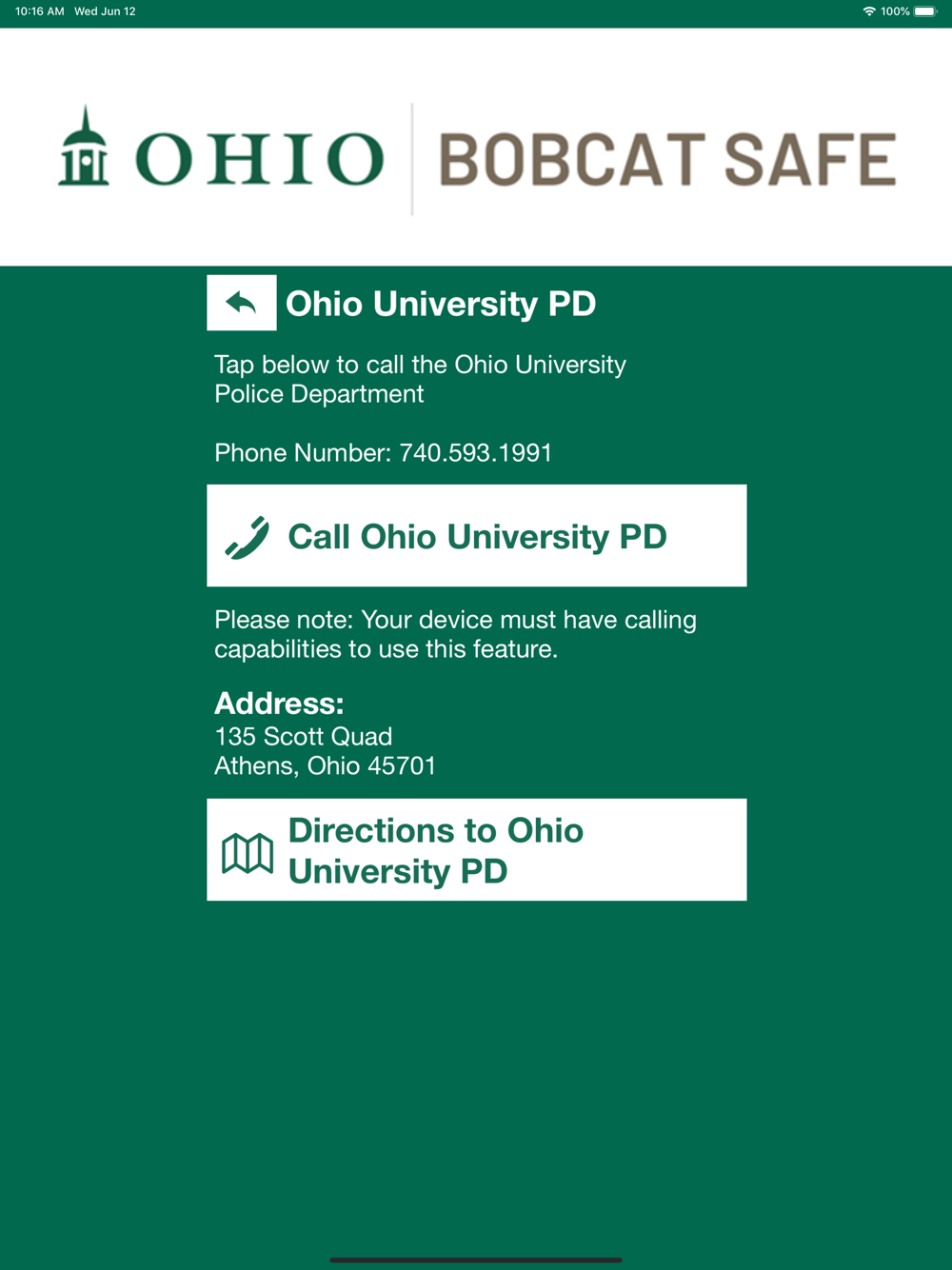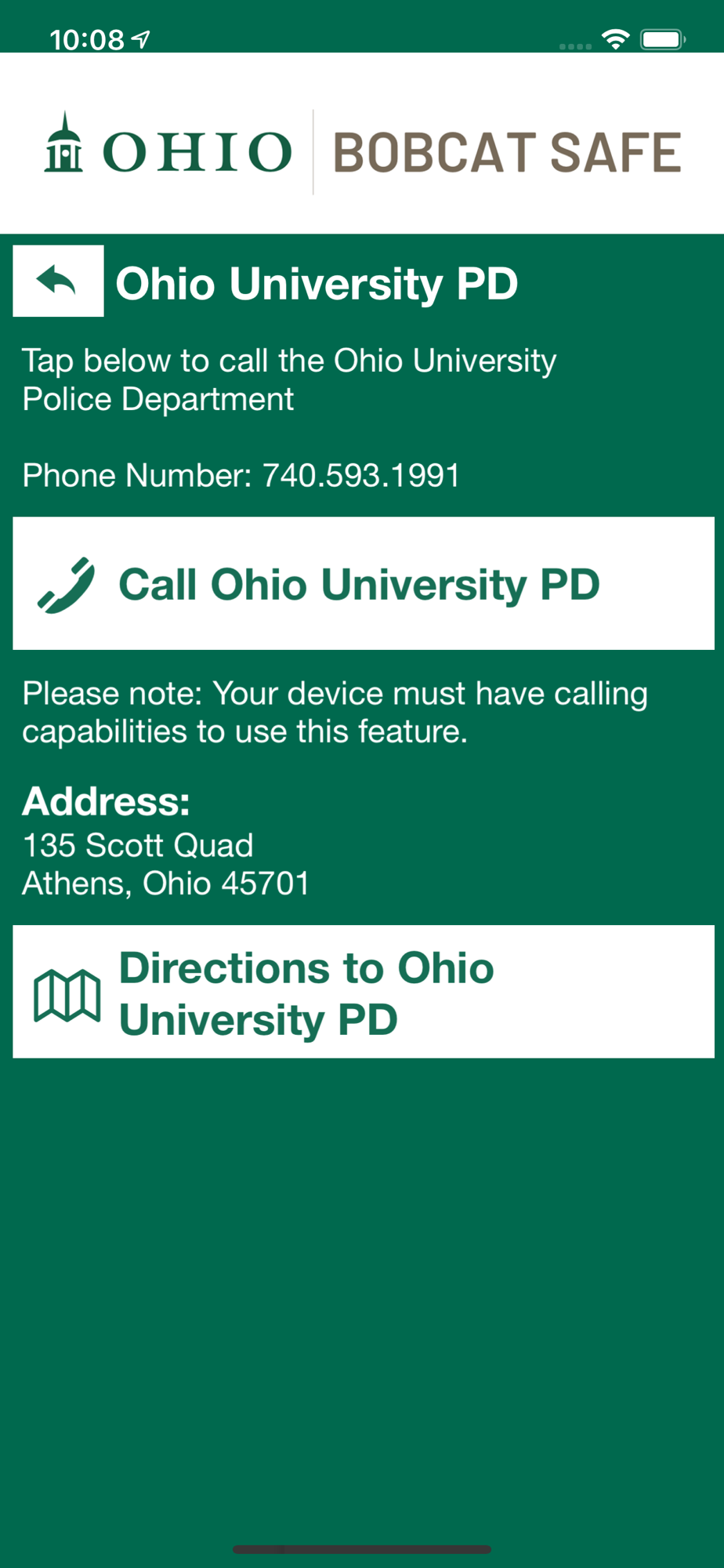 Bobcat Safe is the official safety app of Ohio University. It is the only app that integrates with Ohio University's safety and security systems. Ohio University Police Department has worked to develop a unique app that provides students, faculty and staff with added safety on the Ohio University campus. The app will send you important safety alerts and provide instant access to campus safety resources.