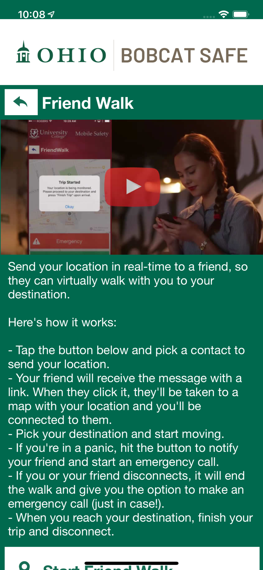 - Friend Walk: Send your location to a friend through email or SMS on your device. Once the friend accepts the Friend Walk request, the user picks their destination and their friend tracks their location in real time; they can keep an eye on them to make sure they make it safely to their destination.