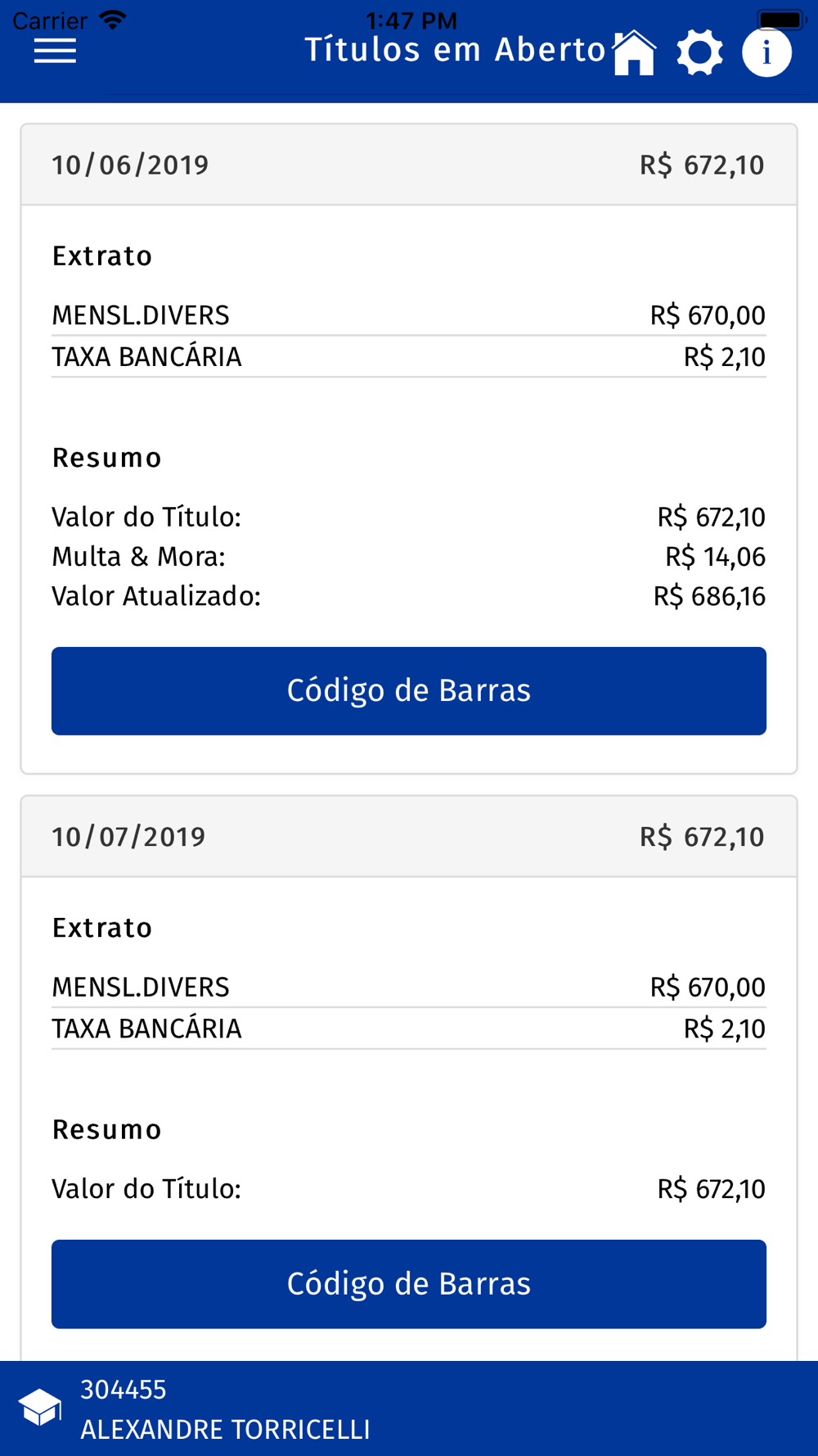 - Visualizar Títulos em Aberto (visível apenas para responsáveis financeiros)