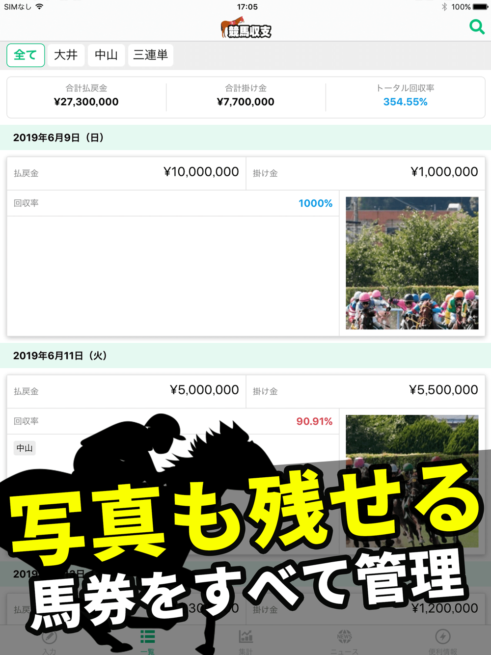 競馬収支を管理 馬券で競馬の収支を計算する収支表アプリ
