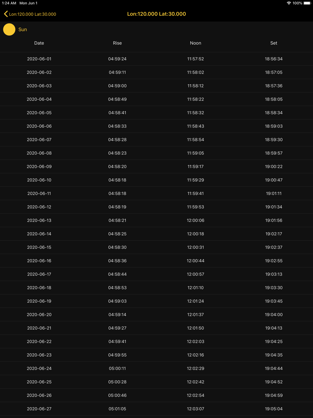 2、moonrise,moonset,moonphase and position of moon,the visibility time of galactic center