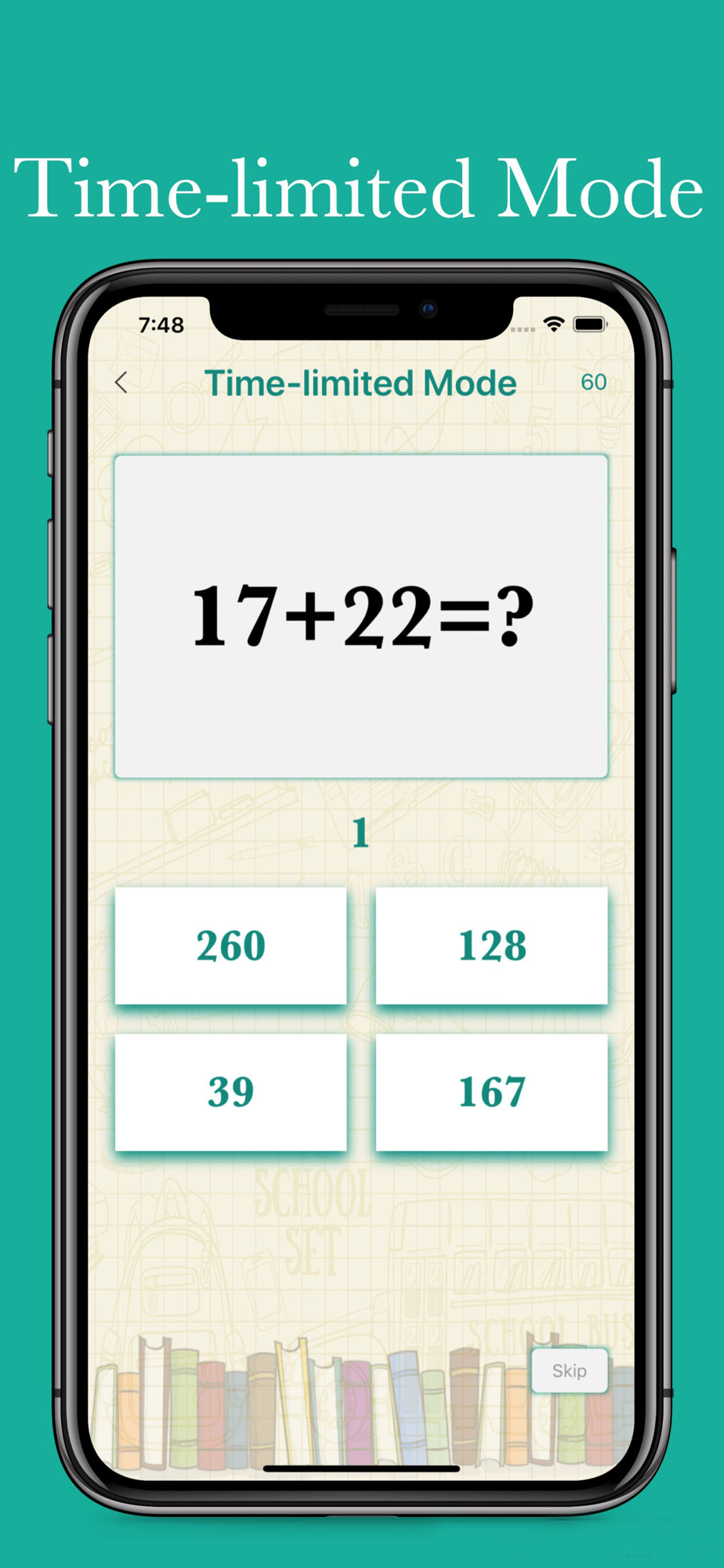 Is your calculation awesome? Are you a first grade primary school or a postdoctoral fellow in mathematics? Accept the challenge of Master of the Math and prove your talent in mathematics! Two modes Start challenging yourself!