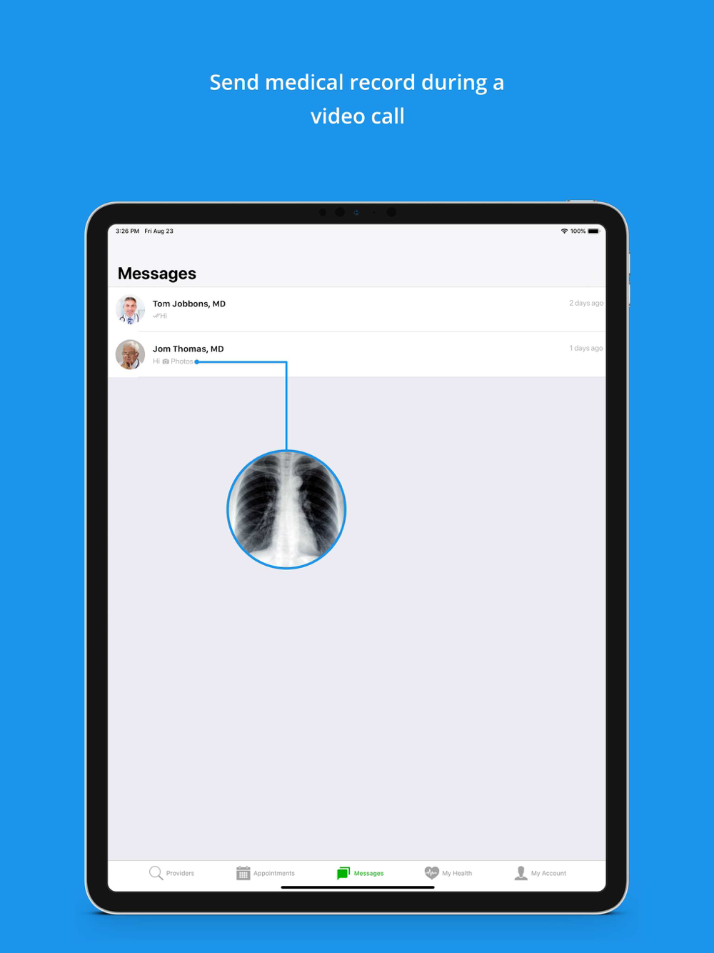 Patients can download the App and register an account for free. Easily search for your doctor’s practice to link with their account and make live video visits from the convenience of your home, work, or on the go.