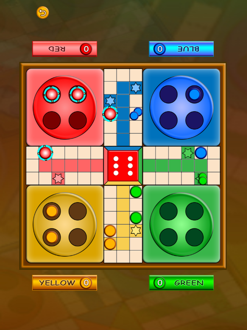 Every player has 4 tokens. Players alternate turns in a clockwise direction.At the beginning of the game, each player's four tokens are out of play and staged in the player's yard (one of the large corner areas of the board in the player's color). When Player role a dice with 6 only then players can enter their tokens one per time on their respective starting squares, and proceed to race them clockwise around the board along the game track.