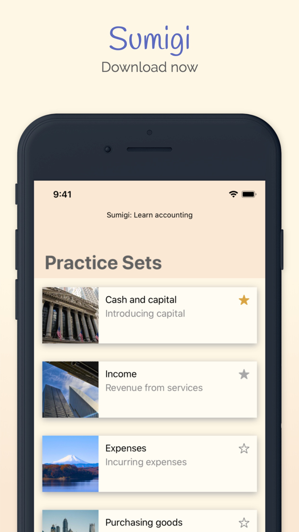 Sumigi: Learn Accounting features easy-to-use accounting practice sets, so you can practice your double entries and financial ratios on the go.