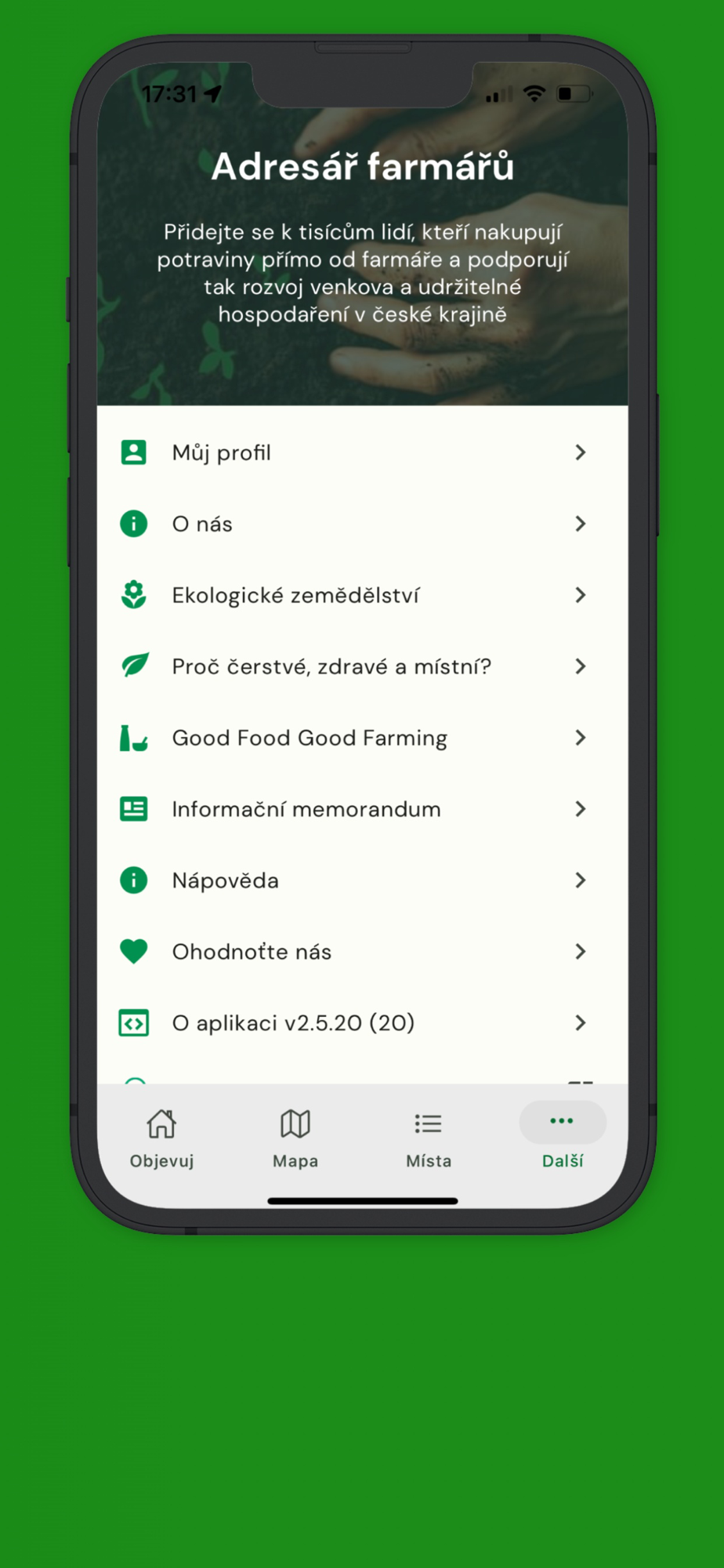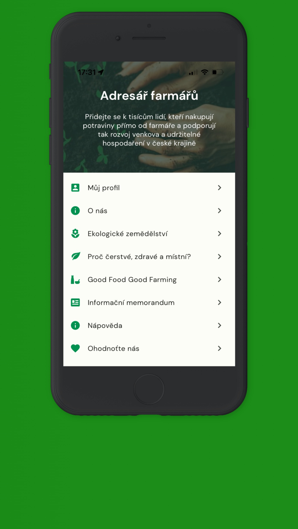 Naleznete zde kontakty a informace o rodinných a drobných farmách, fungujících i vznikajících skupinách komunitou podporovaného zemědělství, bedýnkách, farmářských obchodech i místech, která nabízejí vzdělávací programy o hospodaření.