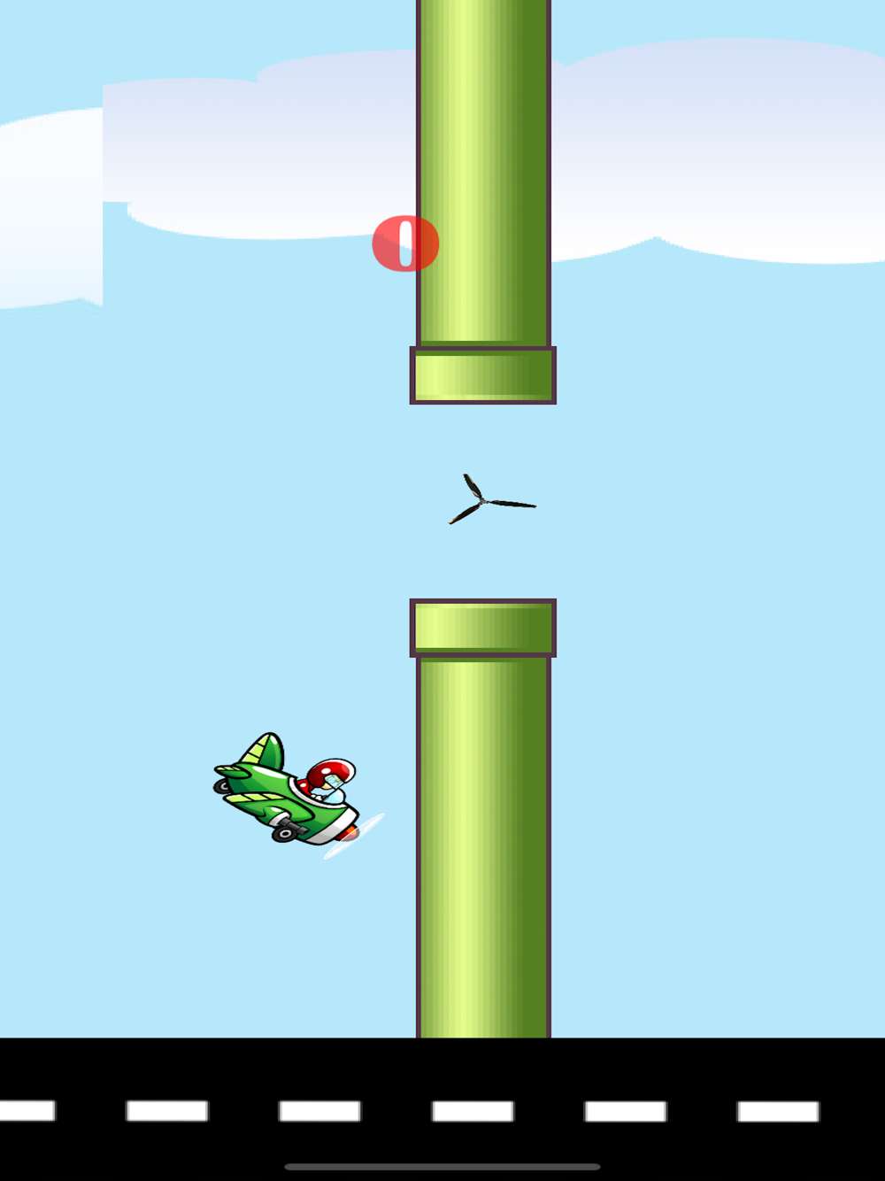 Flying and collect propellas while you fly. Trying not to hit the pipes.