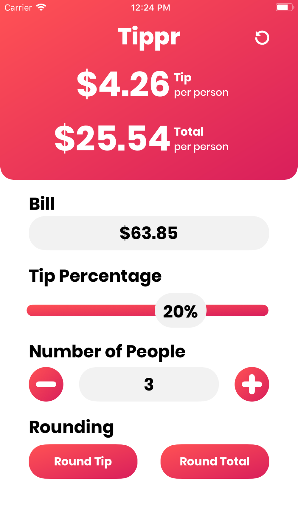 Tippr, a free and easy to use tip calculator to help you leave the right amount of tip every time you eat out! Everything you need to calculate your tip all in one screen in a clean and minimalistic layout.