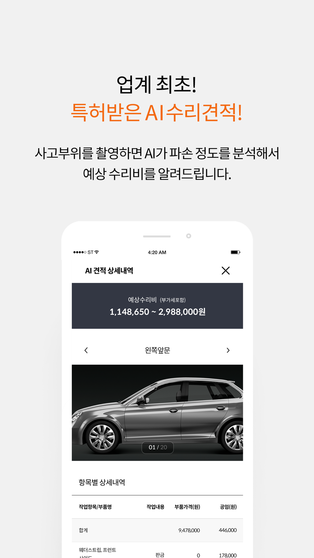 -AI 수리 견적 : 사고부위를 촬영하면 AI가 분석해서 예상 수리비를 바로 확인